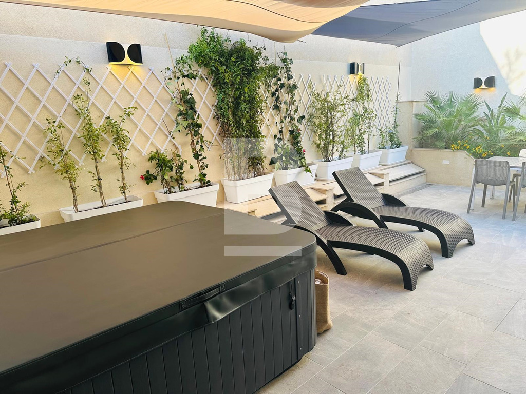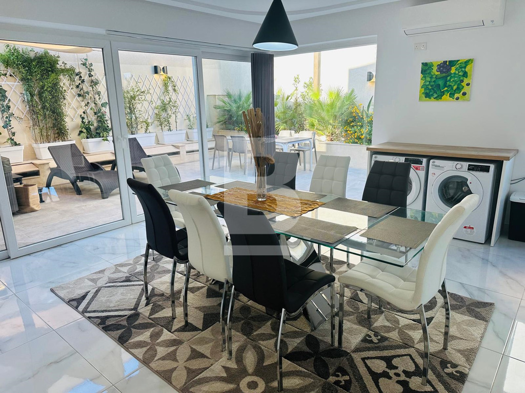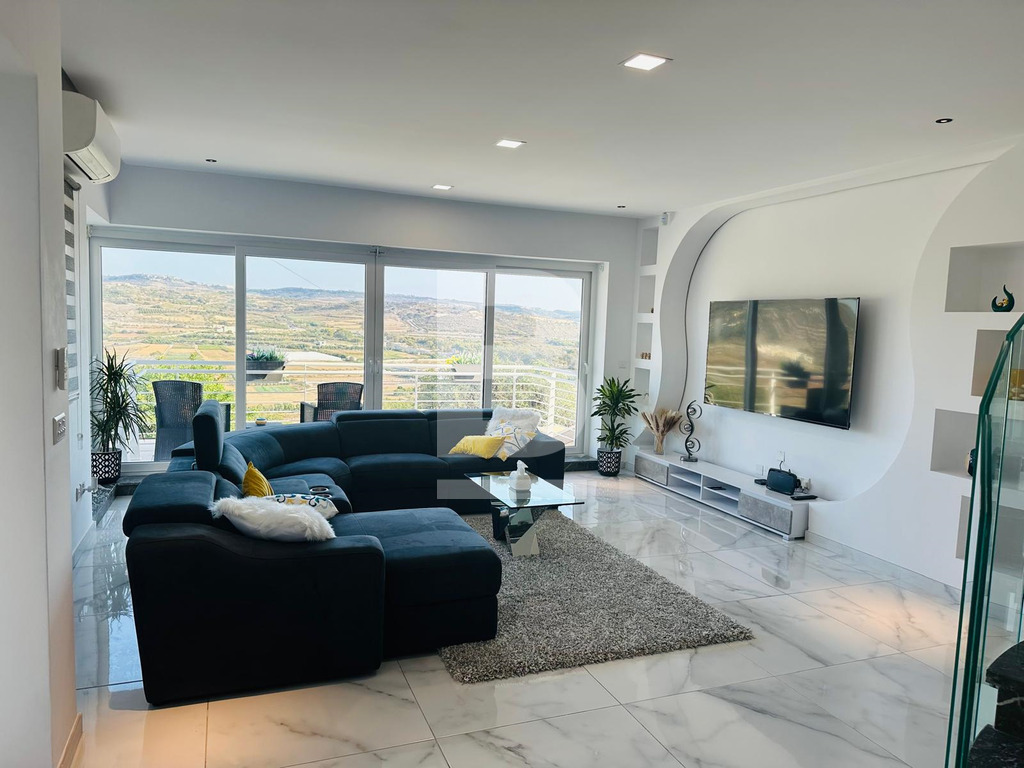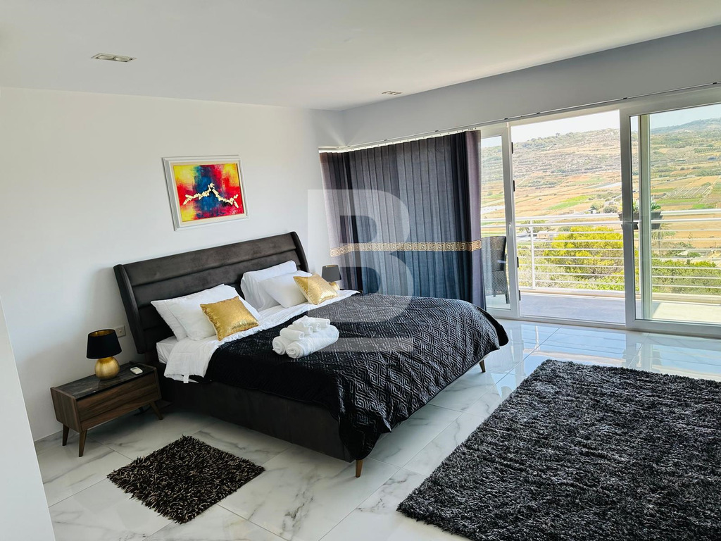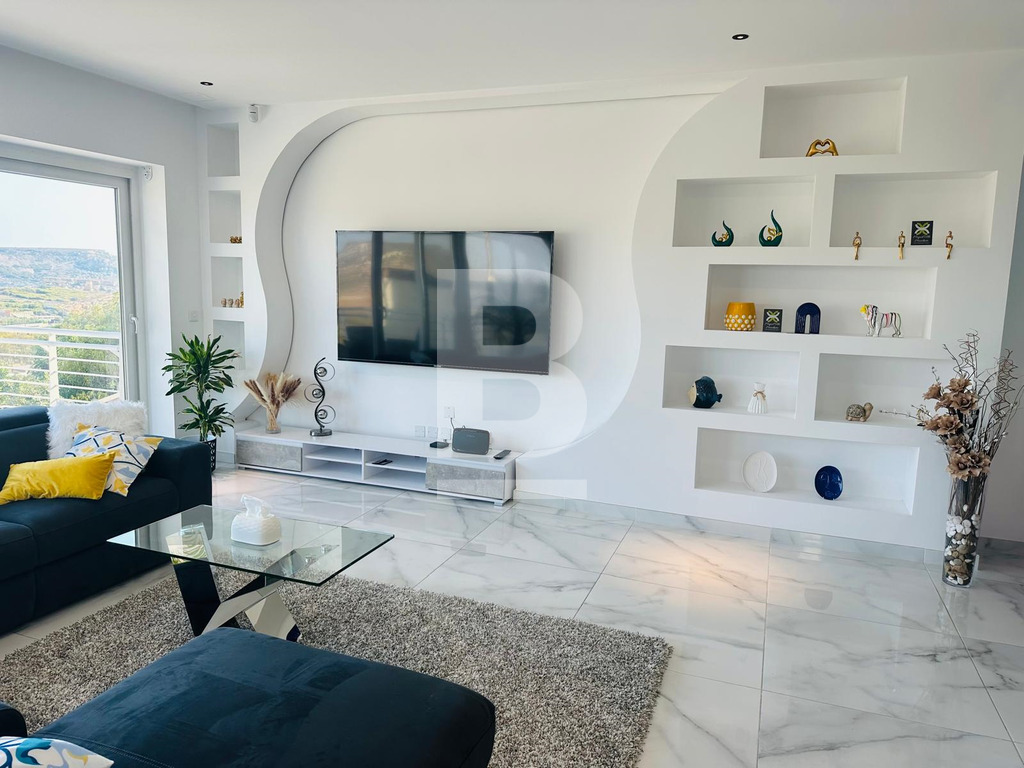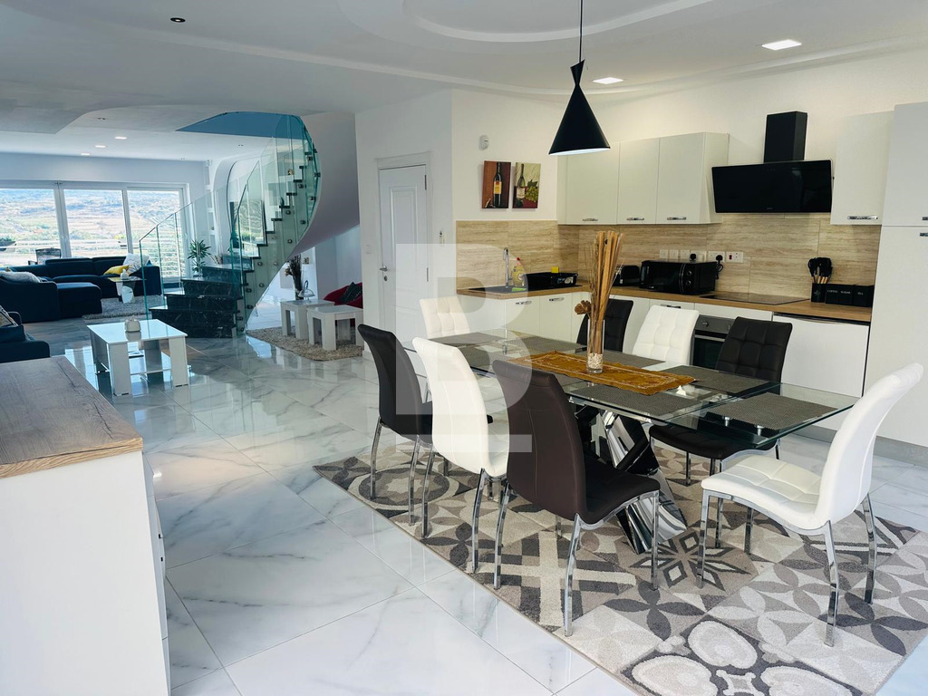 Top Quality 3 Bedroom Semi-Detached Villa in a small, quiet, serene, tranquil town under the Mellieha jurisdiction known as Manikata. The property comprises a large semi-basement garage which features and gym, darts board, billiards table, kitchenette and an air-hockey table. The ground floor starts off with a very large layout of kitchen and dining area coming fully euqipped with high-end appliances including a dishwasher, a main bathroom, seprarate living area with an additional sofa-bed and an spacious interconnected L-Shaped courtyard enjoying outdoor dining/lounge furniture, a jacuzzi, sun-loungers and even a garden patch. Perfect for unwinding in the evenings and for hosting guests and family entertainment. Access to the 1st storey is by a spiral marble staircase where one finds 2 sizeable double bedrooms ( master bedrooms with an en-suite bathroom ), 1 twin bedroom and a further guest bathrooms. There are 2 balconies ( 1 to each storey ) ensuring immense natural lighting all while boasting open sea and country views. There is full air-conditioning, washing machine and tumble dryer, and this propetry is located withing 10 minutes drive of Wellbee's Supermarket in Mellieha, 5 minutes to Golden Bay, Riviera Bay and Popeye's Village. A sought after location due to it's independence and blissful peace!