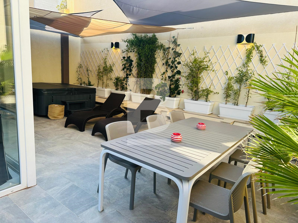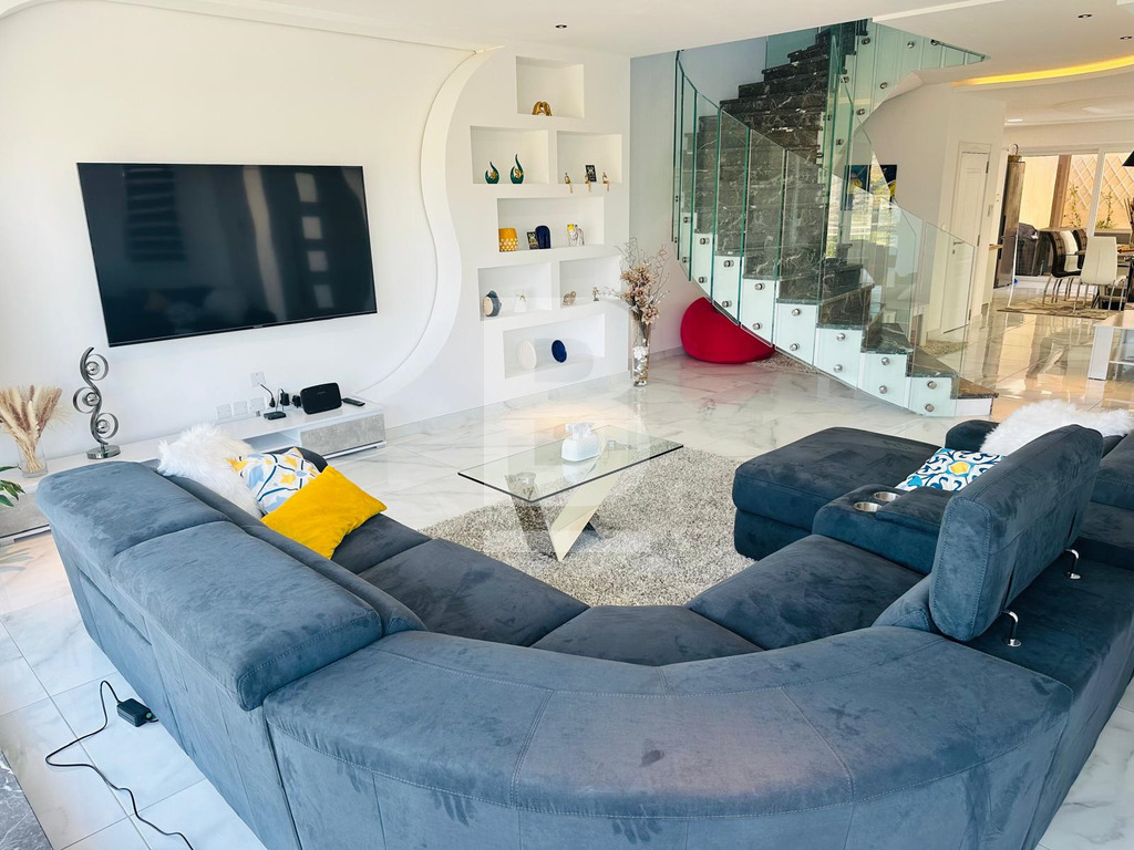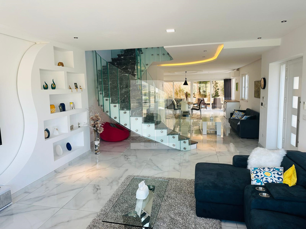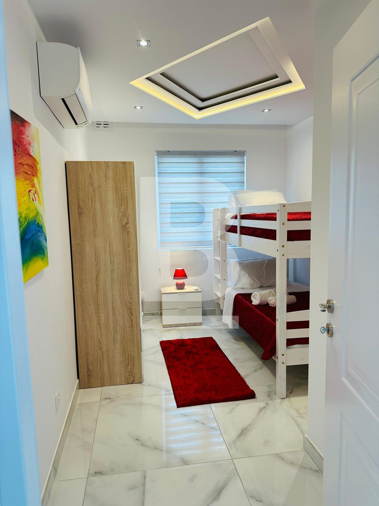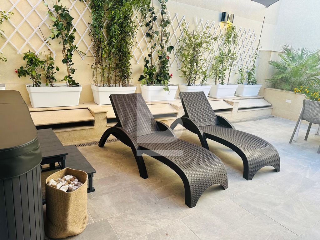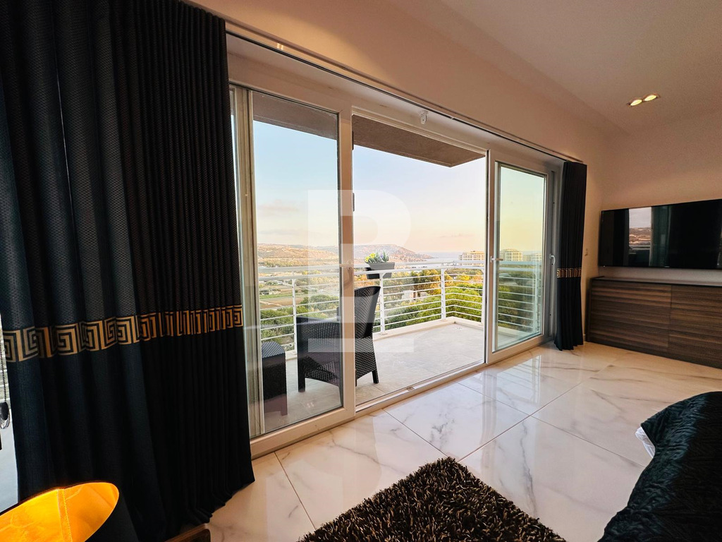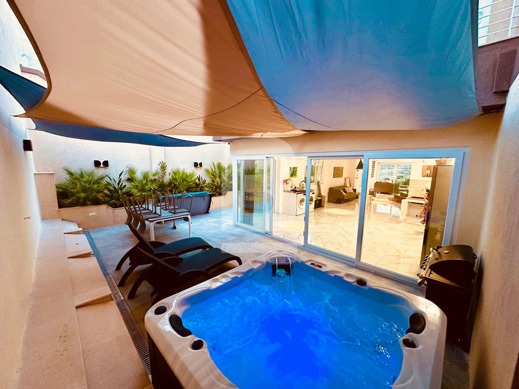 Top Quality 3 Bedroom Semi-Detached Villa in a small, quiet, serene, tranquil town under the Mellieha jurisdiction known as Manikata. The property comprises a large semi-basement garage which features and gym, darts board, billiards table, kitchenette and an air-hockey table. The ground floor starts off with a very large layout of kitchen and dining area coming fully euqipped with high-end appliances including a dishwasher, a main bathroom, seprarate living area with an additional sofa-bed and an spacious interconnected L-Shaped courtyard enjoying outdoor dining/lounge furniture, a jacuzzi, sun-loungers and even a garden patch. Perfect for unwinding in the evenings and for hosting guests and family entertainment. Access to the 1st storey is by a spiral marble staircase where one finds 2 sizeable double bedrooms ( master bedrooms with an en-suite bathroom ), 1 twin bedroom and a further guest bathrooms. There are 2 balconies ( 1 to each storey ) ensuring immense natural lighting all while boasting open sea and country views. There is full air-conditioning, washing machine and tumble dryer, and this propetry is located withing 10 minutes drive of Wellbee's Supermarket in Mellieha, 5 minutes to Golden Bay, Riviera Bay and Popeye's Village. A sought after location due to it's independence and blissful peace!
