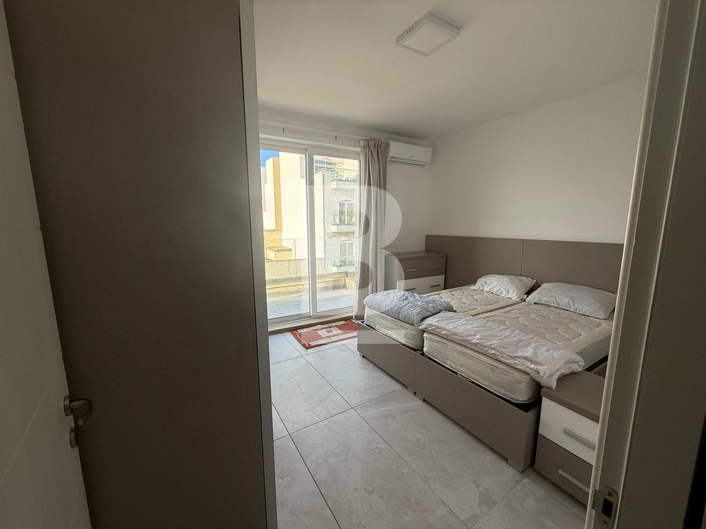 Spacious 2nd Floor Apartment in a Sought-after Location of Swieqi. Comprising 1 double bedroom with an en-suite bathroom, 2 twin bedrooms ( accomodating up to 6 persons ), a main bathroom, fully fitted open plan kitchen, living and dining area with a good-sized front balcony. The property is naturally well-lit, fully air-conditioned, situated on the 3rd floor served with a lift and located close to amenities including; butchers, convenience shops, barbers, Foodville, petrol stations, and within 10minutes walk of the business centres and iGaming companies in Paceville.