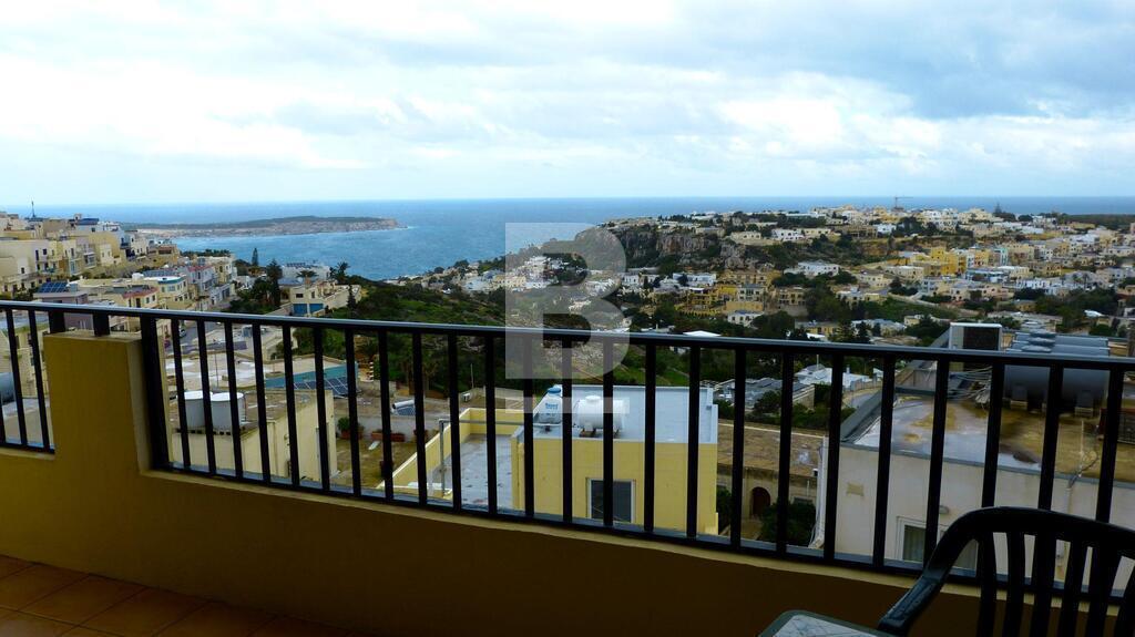 A bright and charming fully furnished apartment with astonishing view in a quiet and residential area of Mellieha a 5min walk away from all shops and amenities. The flat consists of 3 bedrooms (2 double and the last one has 2 single beds) 1 main bathroom, and en-suite shower room in the main bedroom, a large kitchen and a comfortable sitting / dining room opening on a beautiful terrace overlooking Mellieha bay. The apartment is lit by an abundance of natural light and the absence of vis a vis gives it plenty of privacy. Additionally, there is access to a communal rooftop terrace facing inland views of the lovely Santa Maria Estates. The apartment is partially air-conditioned. Exceptional property for a small family.