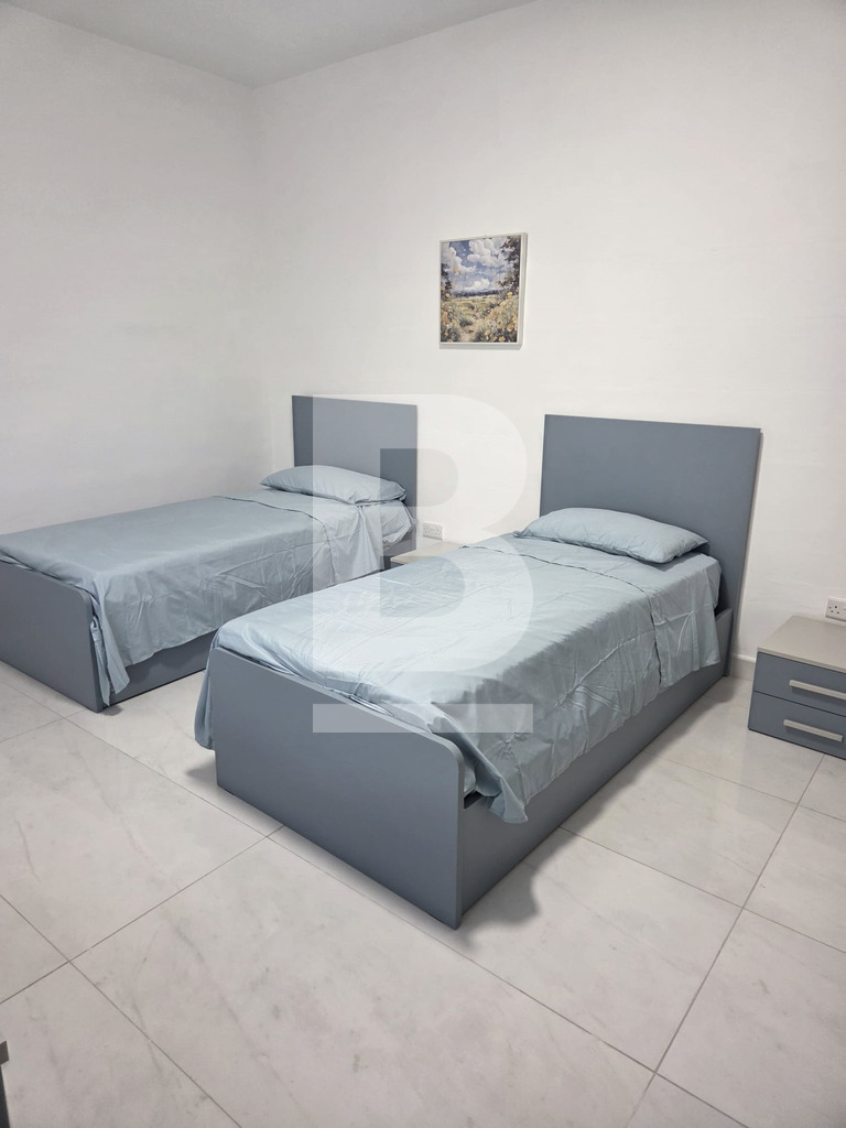 ST JULIANS - A three-bedroom apartment (1 double bedroom+2 singles)having a living/dining, separate kitChen, two bathrooms, en-suite. separate kitchen Property measures155 sqm and has a front and a bacK balcony.