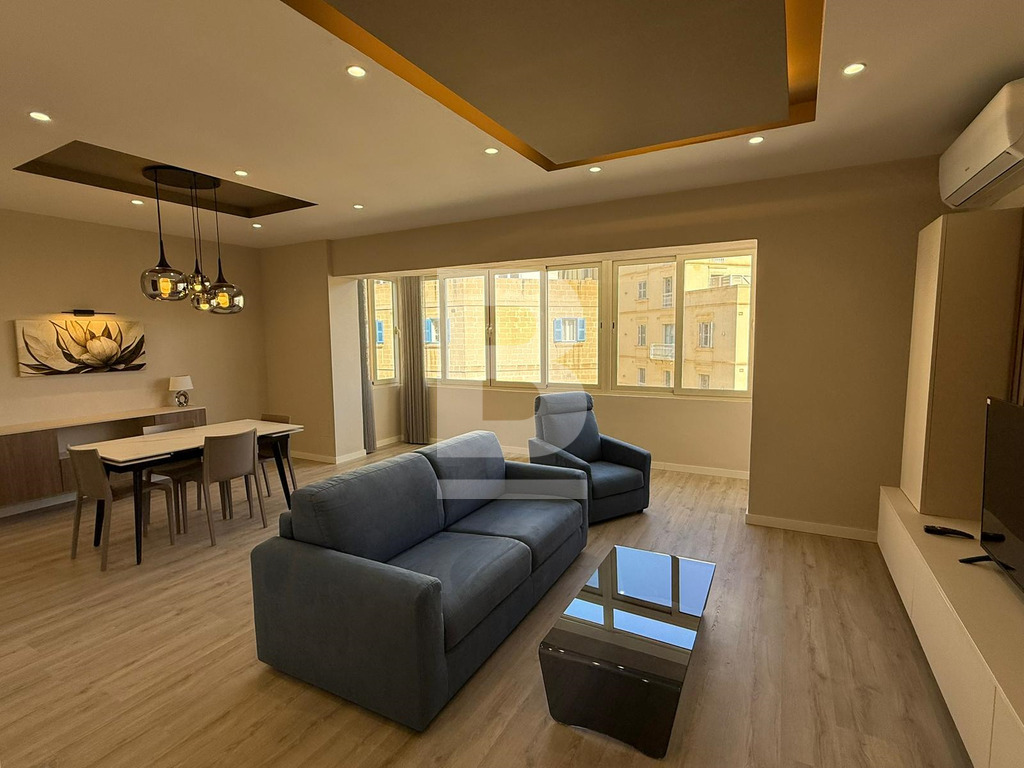 Newly Renovated and Designer Finished 3 Double Bedroom Apartment just off the Seafront in Sliema. Accommodating up to 6 persons, this property is of high quality and with soft furnishings. Comprising further of 2 shower rooms ( 1 being en-suite ), a fully equipped open plan kitchen, living and dining area including a dishwasher and a front balcony enjoying side seaviews. The property is fully air-conditioned, situated on the 3rd floor served with a lift, naturally well-lit and located primely close to daily amenities, including; restaurants, beach clubs, cafes, bus stops and the sea!