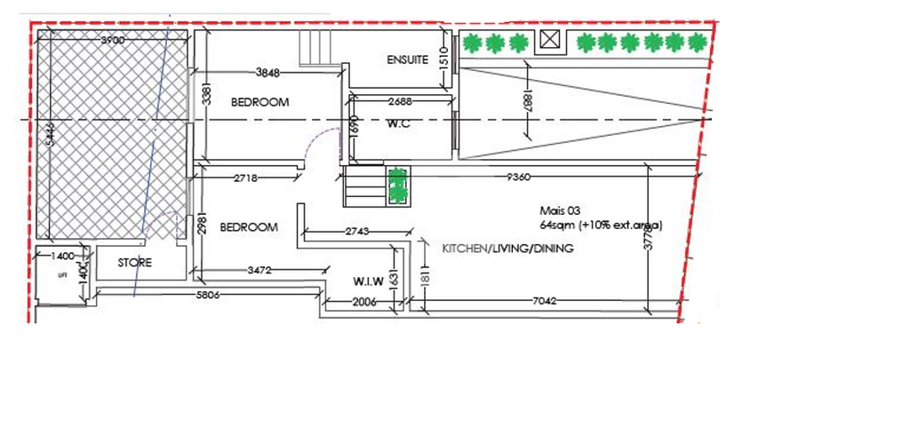 Semi-finished Ground floor MAISONETTE , forming part of a new development within walking distance to most amenities. Property measures approx 74 sqm. Property comprises an open plan kitchen/ living/ dining area, 2 bedroom main with an ensuite shower room, main bathroom and a back yard. Property is being sold semi finished excluding bathrooms and internal doors. Optional garages/car spaces available. Completion June 2027.