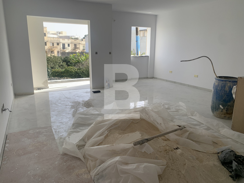 Highly finished APARTMENT, forming part of a new development in MOSTA. Located in a quiet and quaint area. The property measures appox 116.74sqm and comprises an open-plan kitchen/ living/ dining area, leading out onto a front terrace, enjoying side open green views, main shower room, box room, two double bedrooms, with the option to have a third bedroom, master having an en-suite and a back balcony.