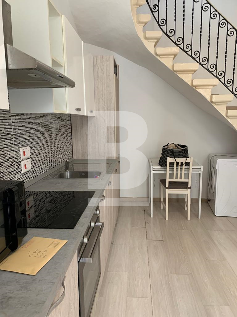 The property is laid out over three floors and features an entrance into a fully fitted kitchen with dining area and a comfortable living space. A double bedroom on the first floor enjoys a small, charming balcony and a shower room. At the cellar level, there is a versatile multi-purpose room ideal for use as a temporary bedsit or additional living space.
