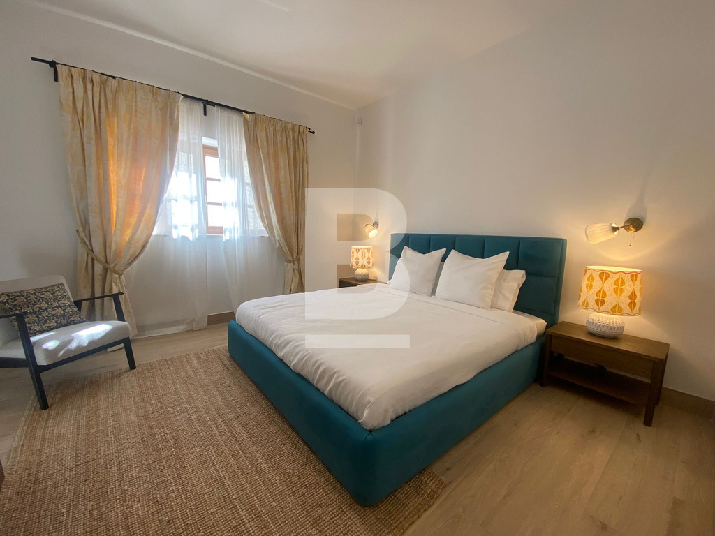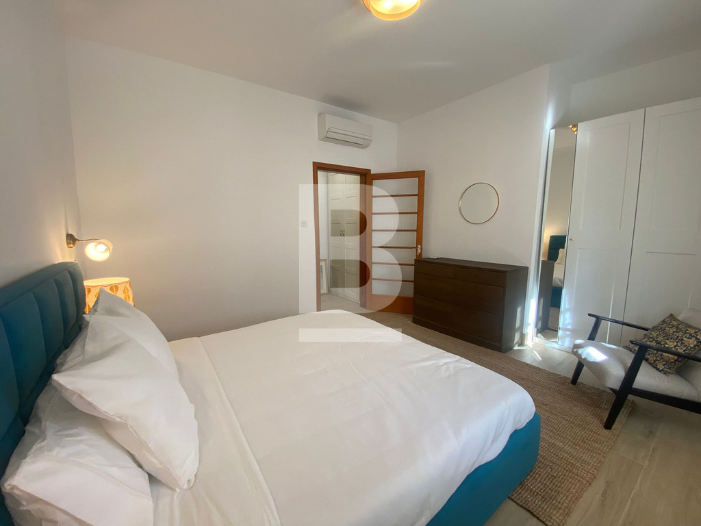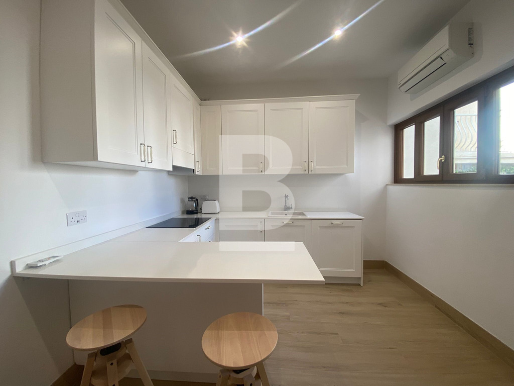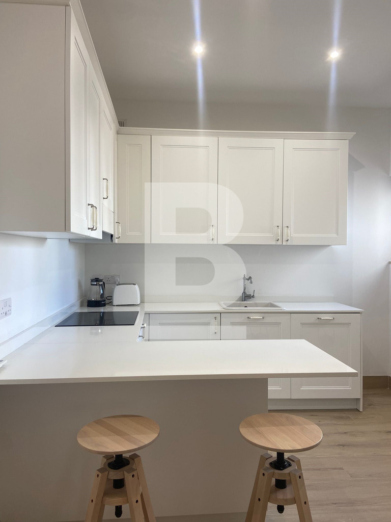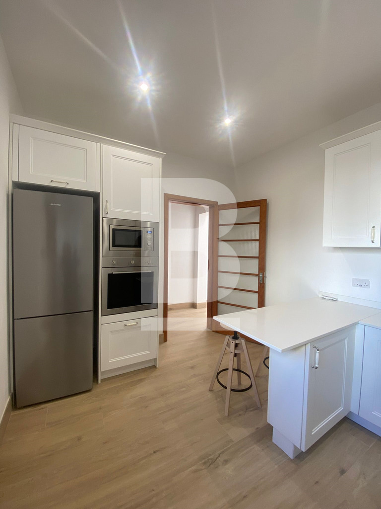 Bright and spacious first-floor apartment, recently refurbished and enjoying a stylish 1960s design. Located in a quiet residential area of Balzan, yet close to all amenities. The property comprises a welcoming entrance hall, a large open-plan living and dining area leading onto a front balcony, a fully equipped kitchen, two bedrooms (main bedroom with en-suite shower room), a main shower room, and a utility room.