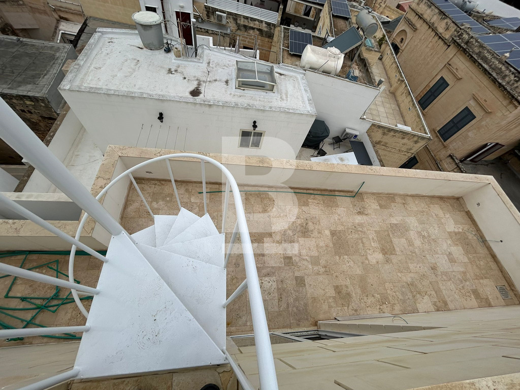 Situated in a Quiet Alley of Naxxar, comes this duplex penthouse for sale. Covering approximately 200sqm, it comprises 3 double-sized bedrooms, 2 bathrooms ( 1 per floor ), a squarish kitchen, living and dining area by which you can access via a spiral staircase, an interconnected front terrace offering distant country views, leading to the roof terrace via spiral staircase and a private rooftop pool. Four front balconies further complement the penthouse, ensuring ample natural light absorption. The property is being offered freehold, fully finished, including bathrooms, internal doors, and AC units, and presents a great opportunity for those seeking a spacious property in a quiet location.
