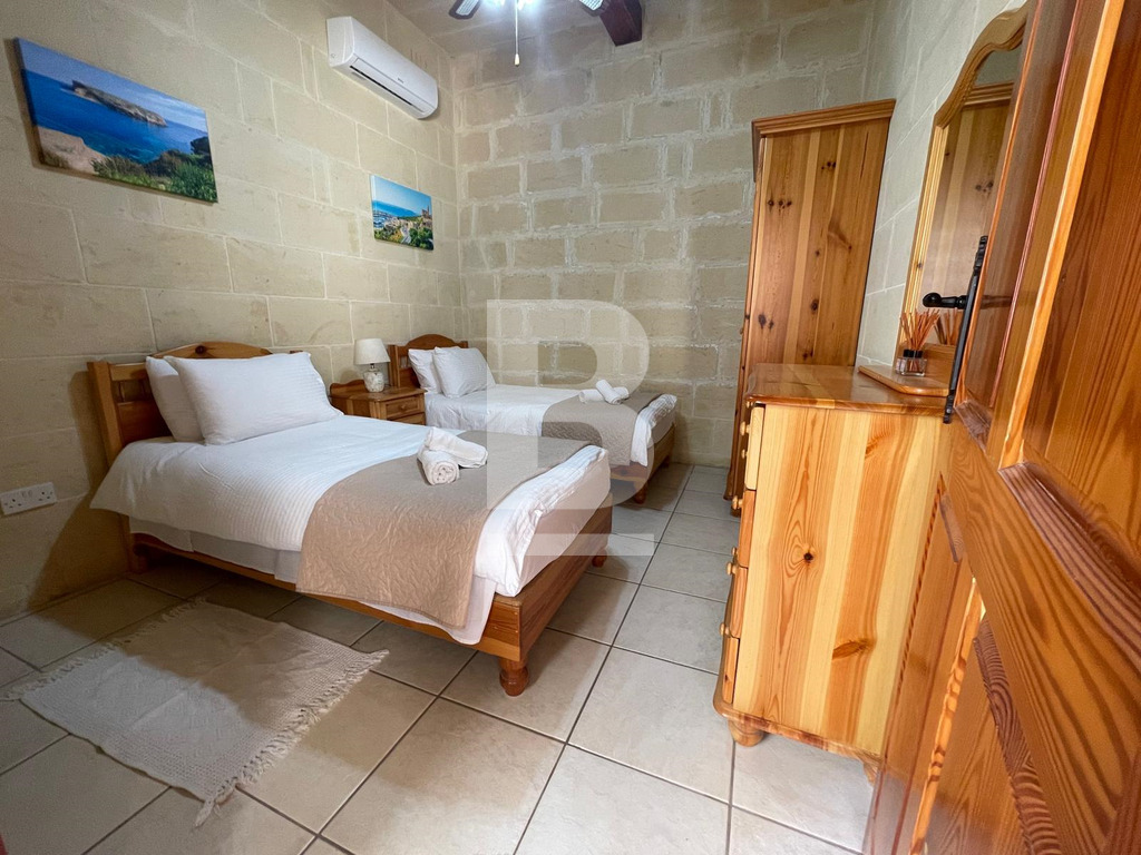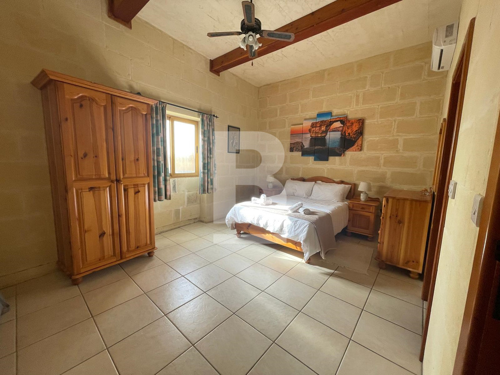 Set on the edge of Gharb’s unspoilt countryside, this peaceful and light-filled house of character offers a relaxed Gozo lifestyle with 3 (2 double and 1 having 2 single) comfortable bedrooms, all equipped with air-conditioning and ceiling fans, one en-suite bathroom and a main bathroom. A spacious open-plan kitchen, living and dining area bathed in natural light opens seamlessly onto a private outdoor retreat with a swimming pool, jacuzzi, expansive deck and gas BBQ, all set within a quiet and serene location close to open fields and scenic walking paths, ideal for those seeking tranquillity, comfort, and authentic charm.