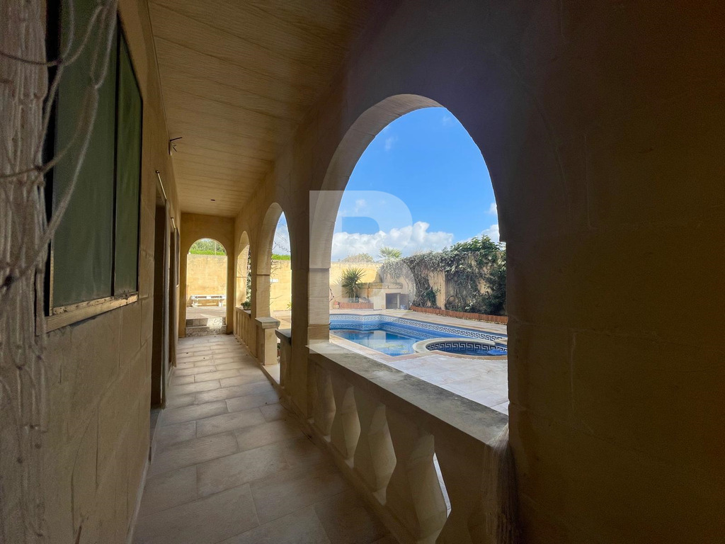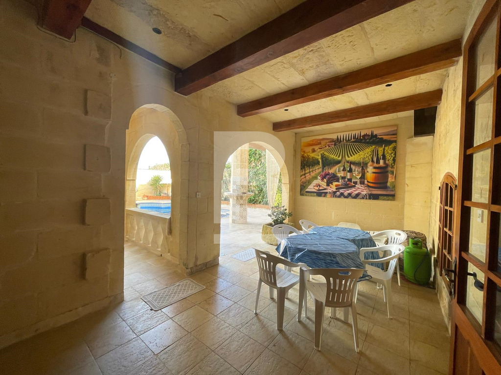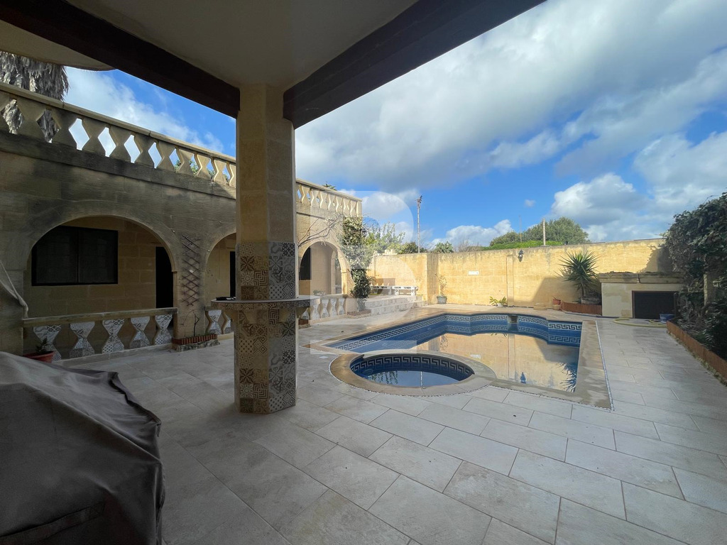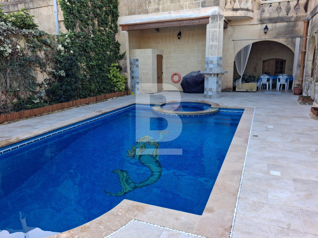 Set in the heart of Gharb, this beautifully restored traditional farmhouse offers exceptional space, charm and complete privacy, featuring an internal courtyard entrance that leads to a striking converted mill room now serving as a generous open-plan kitchen, living and dining area, opening seamlessly onto an expansive deck and BBQ area, a private swimming pool with jacuzzi and poolside shower, 6 spacious double bedrooms each with its own en-suite bathroom arranged across ground and first floors and an upper-level terrace enjoying open views over surrounding farmland, with easy public parking nearby making this an outstanding opportunity for a refined and peaceful Gozitan retreat. Sub Letting can be considered upon request.