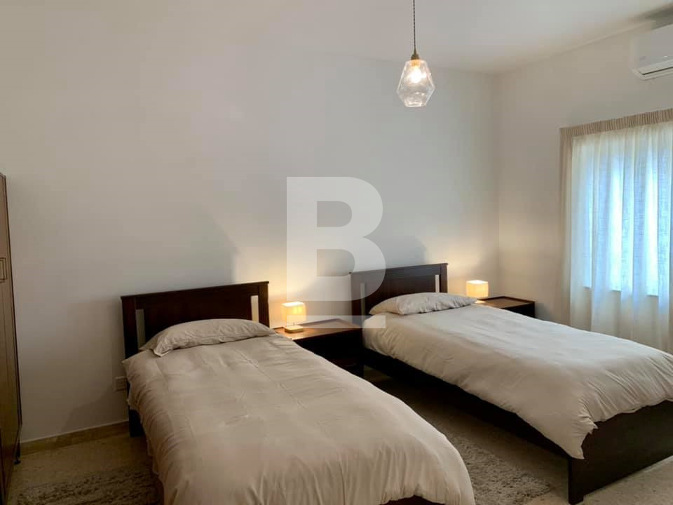 Recently Refurbished 3rd Floor Apartment just off the Seafront in Sliema. Comprising 1 double bedroom, 1 twin bedroom, an office room which can be converted into a 3rd bedroom, 2 bathrooms (1 being en-suite to the master bedroom ), a boxroom with both washing machine and tumble dryer with some extra storage space, a fully fitted open plan kitchen, living and dining area with a covered front balcony enjoying seaviews of Balluta. The property is fully air-conditioned, has lift service in the block and located within close proximity of Exiles Beach Club, Paradise Exiles, Independence Gardens, restaurants, gelaterias, Balluta Church, cafes the sea etc...
