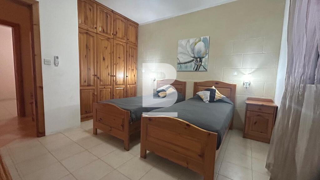 Discover this beautifully proportioned apartment where space and practicality come together to create a warm and inviting home. Set within a fully furnished older-style block served by a lift, the property boasts a layout rarely found in modern developments and is enhanced by two open balconies enjoying pleasant side sea views. Inside, an impressively large open-plan kitchen, living and dining area offers the perfect setting for entertaining, comfortably accommodating large groups. The layout is complemented by a generous washroom with ample storage, ideal for laundry use or as a cosy sitting area. The apartment features 3 well-sized bedrooms, including a master bedroom with en-suite shower room. Two additional bedrooms are fitted with twin beds that can easily be converted into doubles, while a separate main shower room ensures everyday convenience. With its rustic charm, spacious interiors, and functional design, this apartment is an excellent choice for families or groups seeking comfort, character, and a relaxed Gozo lifestyle.