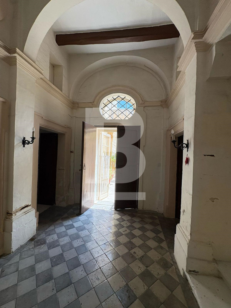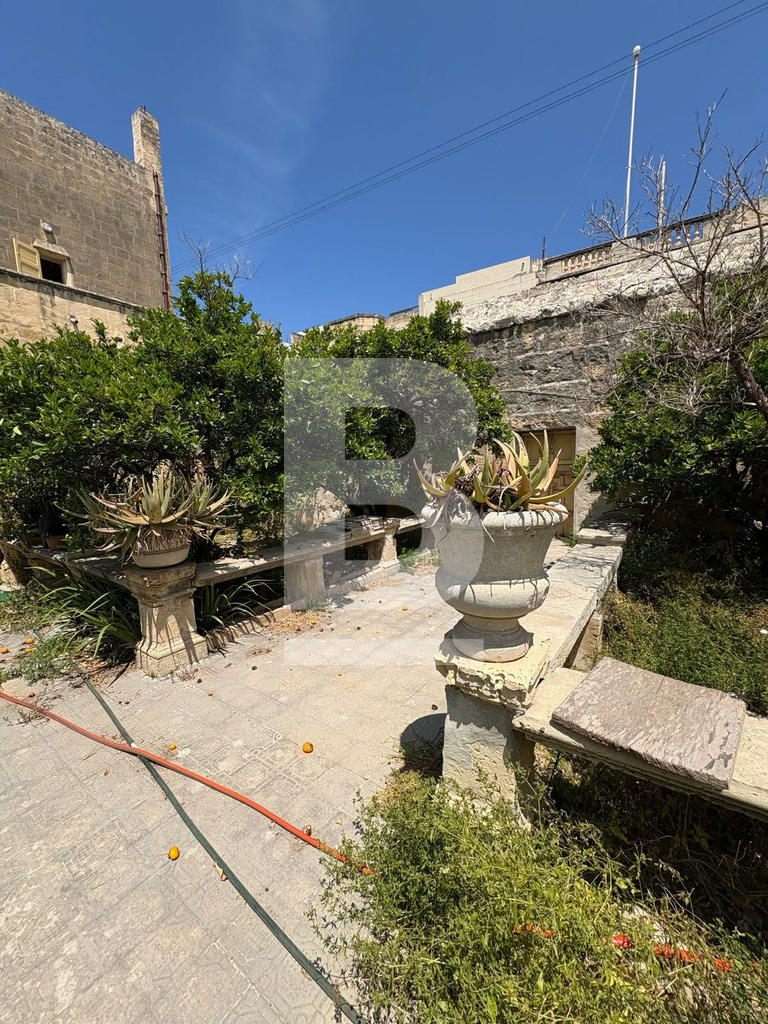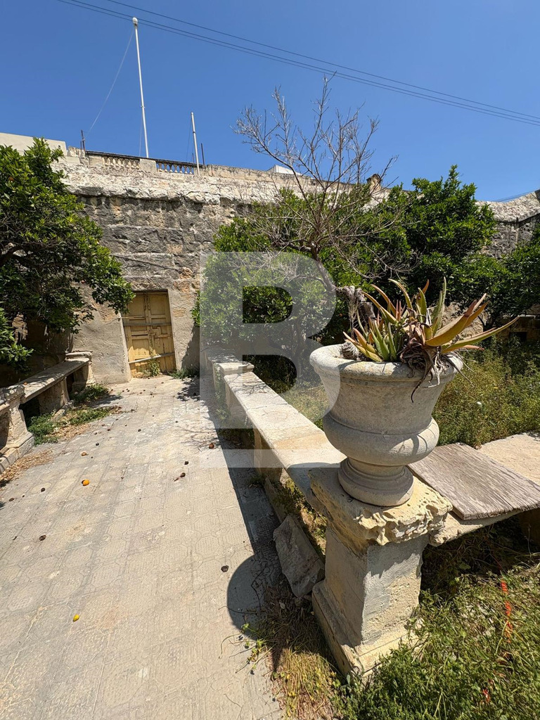 TARXIEN. This distinguished historical building on 750 sqm is a notable corner, fully detached 18th-century Baroque Palazzino full of history. The building is characterized by 18th-century Baroque style, featuring elaborate stone work on the main entrance, doors, and windows, with balcony supports reflecting Sicilian influence. The Palazzino and garden cover an area on over 750 sqm and serves as a landmark illustrating the architectural and cultural history of Tarxien. This wonderful property includes a Sala Nobile, large high arched ceilings. an imposing hallway and entrance that leads out to a lovely garden with a niche and other features, a garage, side entrances and a separate flatlet. Once converted will make a wonderful 4 bedroom Plus home with an amazing garden and pool!!
