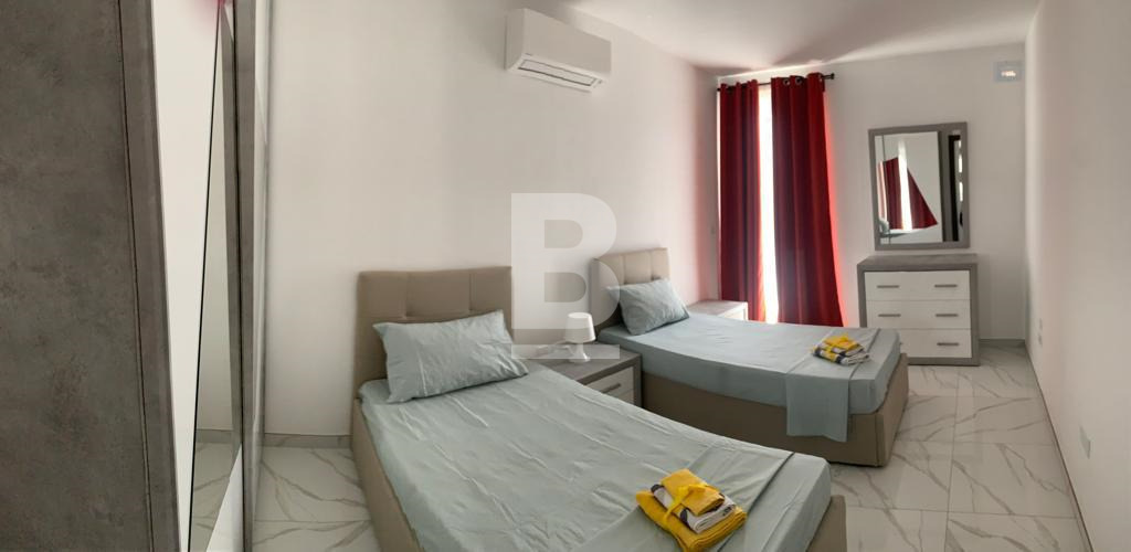 Bright and Modern 2 Bedroom Apartment in a Central Location of Sliema. Ideal for a couple or sharing individuals, it comprises a double bedroom with en-suite bathroom for added privacy, a 2nd bedroom with 2 single beds, a spacious main shower room with the 2-in-1 washing machine/tumble dryer, a fully fitted open plan kitchen, living and dining area with large windows and a front balcony flooding the apartment with natural light. The property is fully air-conditioned, situated on the 4th floor with lift service and located primely close to amenities including; convenience shops, LIDL Supermarket, clinics, barbers, bus stops and the Sliema Promenade.