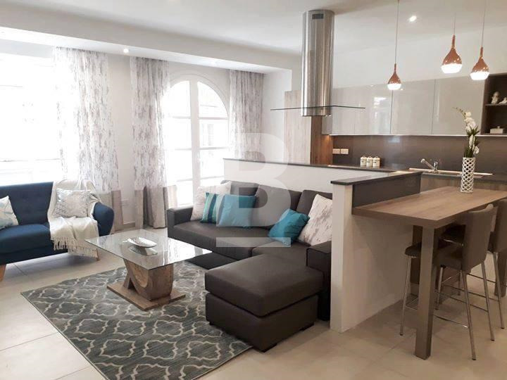 Bright, Modern and Spacious 3 Bedroom Apartment just off the Sliema Seafront. Comprising 1 double bedroom with en-suite facilities for added privacy, 1 twin bedroom, 1 single bedroom ( accommodating up to 5 persons ) - ideal for a small growing family or sharers, a further main bathroom, fully equipped larger than usual open plan kitchen, living and dining area including a dishwasher and front balcony with large windows enjoying natural light during all times of the day given that the apartment is North-facing. Property further features a washing machine/tumble dryer, air-conditioning throughout, lift service situated on the 1st floor and located primely close to amenities including: barbers, grocers, gyms, cafes, restaurants, beach clubs, banks, bus stops and more...