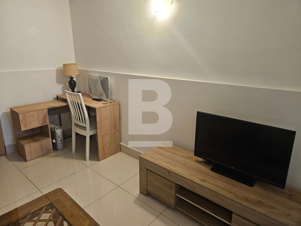 This well-presented one-bedroom apartment offers comfortable, low-maintenance living in a quiet setting. The property is fully furnished and thoughtfully laid out, making it ideal for a single professional or couple. The apartment features an open-plan kitchen and living area, equipped with essential appliances including a gas hob, oven, microwave, fridge/freezer and washing machine. The living space is furnished with a sofa, coffee table, TV unit, dining table and chairs, creating a practical and welcoming environment. The bedroom is bright and spacious, furnished with a double bed / 2 singles with mattress, storage drawers and shelving. A separate walk-in wardrobe/storage area provides excellent additional space. The bathroom includes a walk-in shower, WC and sink, finished with neutral tiling and natural light. Additional benefits include a private outdoor patio area, ideal for light storage or enjoying fresh air along with a private entrance which adds to the sense of independence and privacy.