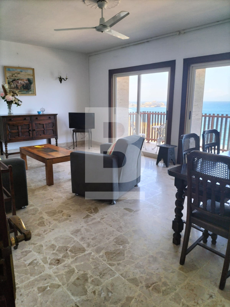 A well-located 2-bedroom apartment set directly on the Sliema seafront. This comfortable home comprises two bedrooms, a main bathroom and a separate guest toilet, offering a practical layout and generous living space. Property is well kept and benefits from an unbeatable seafront position.