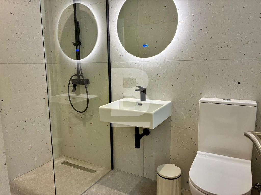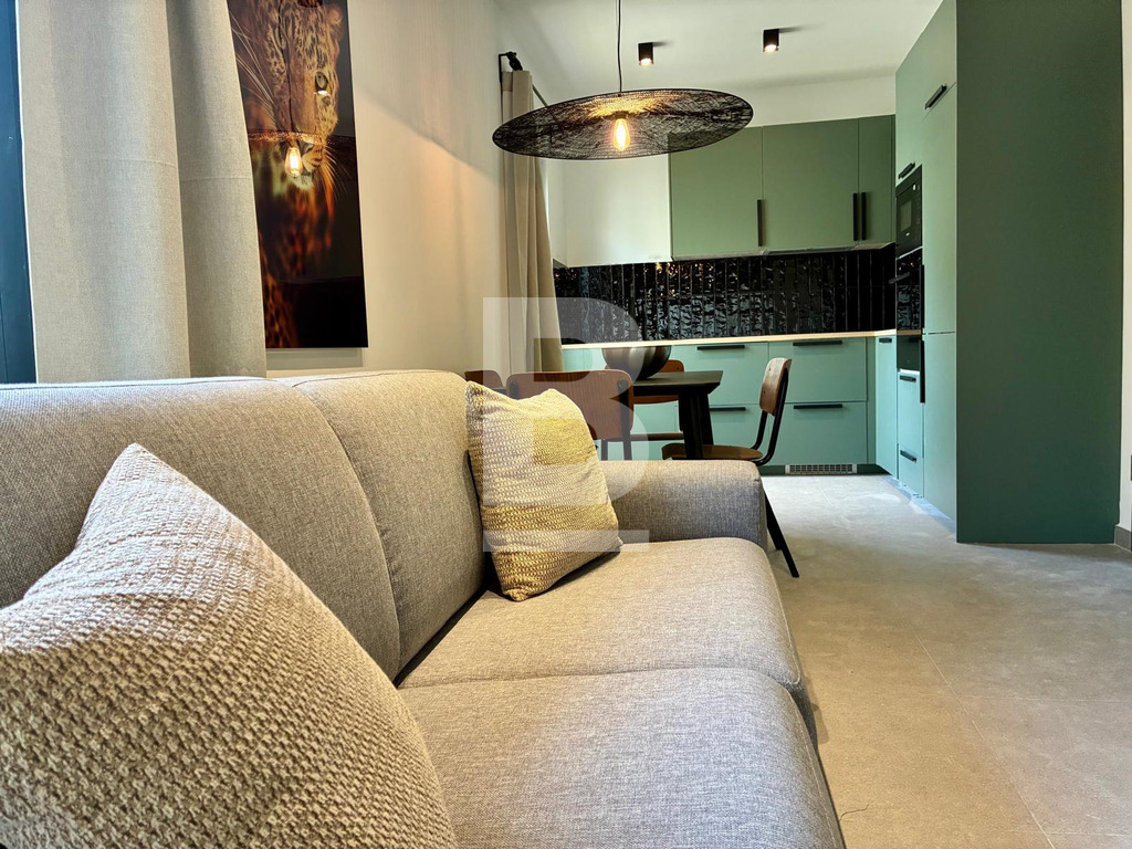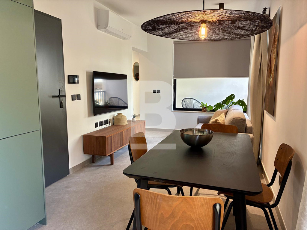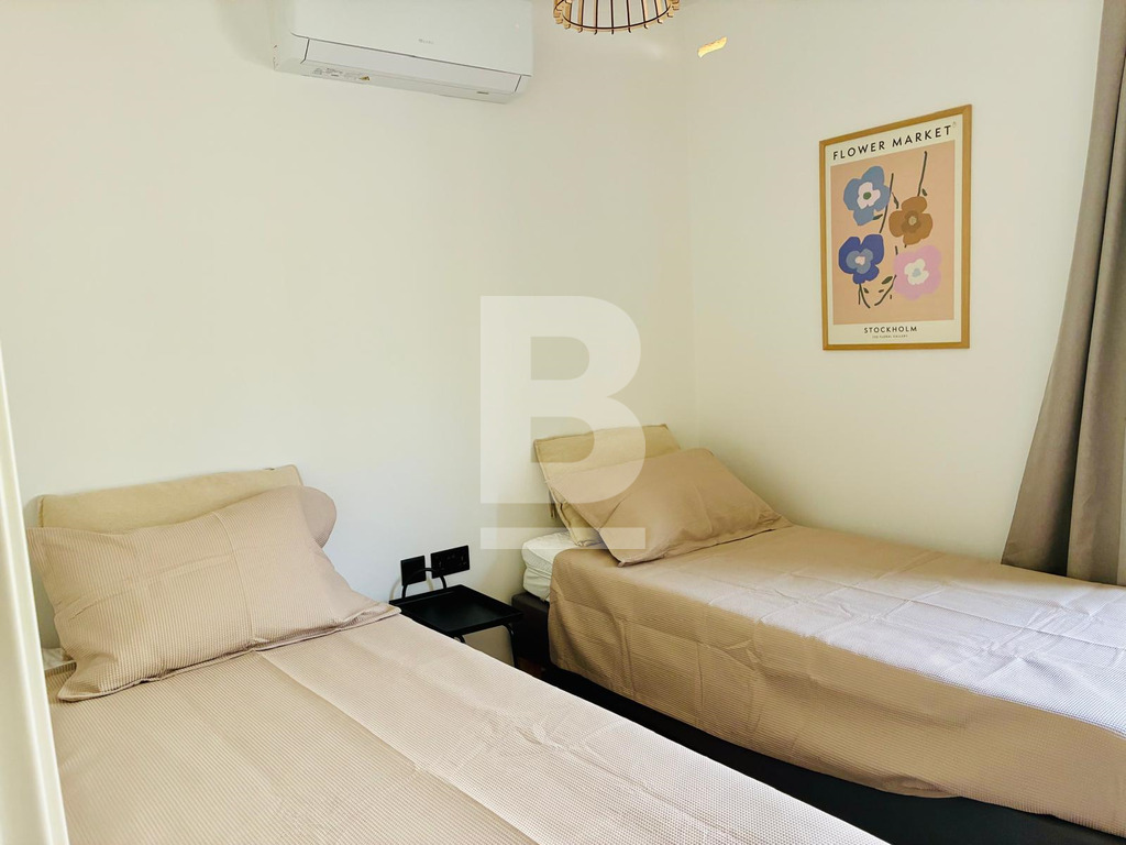 A brand-new, well-designed, fully furnished two-bedroom, wide-fronted apartment forming part of a small, smart block. This second-floor apartment measures 71 sqm internally and 7 sqm externally. It comprises an open-plan kitchen/living/dining area, a main bathroom, an attractive covered verandah, a twin guest bedroom/study, and a main bedroom featuring a dressing area, en-suite bathroom, and private balcony.