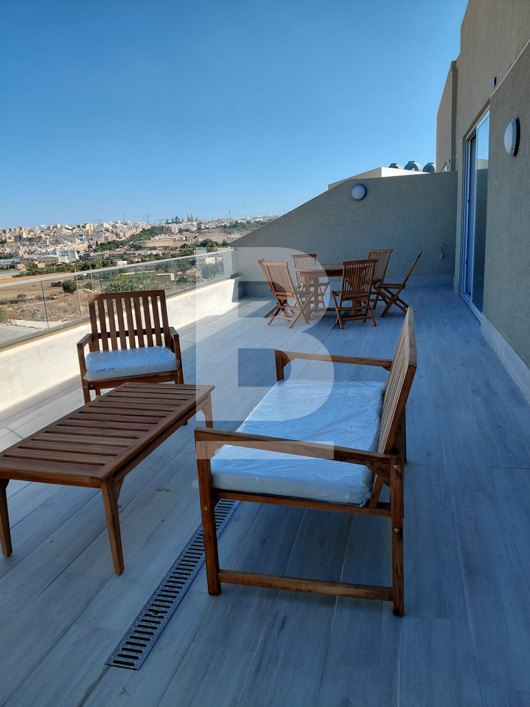 Newly furnished penthouse forming part of a residential complex consists of 3 bedrooms and 2 bathrooms, combined kitchen/living/dining room and large front terrace with the BBQ. Finished to high standards including all amenities. This property is situated in a very nice quiet residential area of Lija, yet close to all shops and bus stops.