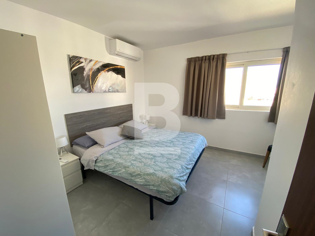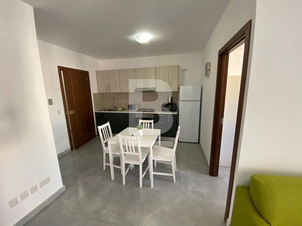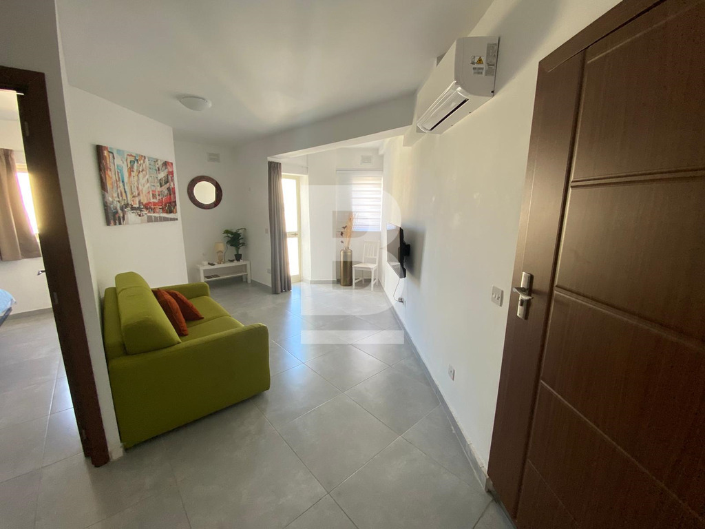 A bright 1-bedroom apartment located on the 4th floor, served with lift, featuring a spacious and modern open-plan kitchen and dining area, along with a separate TV room that connects to a front balcony. The property also includes a well-sized double bedroom and a main bathroom, creating a comfortable and practical living space.
