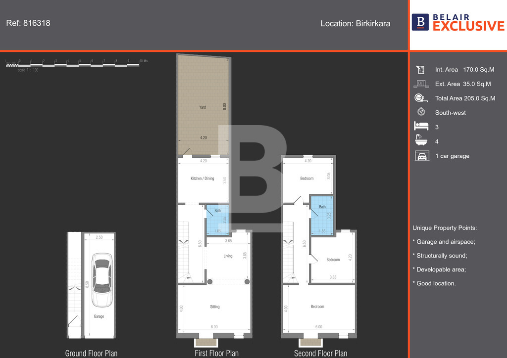 Very rare to come by such a property that ticks all the boxes for a family home or an investment. This solitary duplex masionette with a street-level garage and airspace is situated at the centre of Birkirkara, making it convenient and close to all amenities and public transport. The layout consists of a fully fitted kitchen/ breakfast leading onto a sunny back yard measuring circa 35sqm. A large guest bathroom and a large open-plan lounge area.