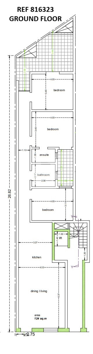 The maisonnette features three spacious bedrooms, one of which enjoy private en-suite bathroom, along with a main family bathroom for added convenience. The heart of the home is a bright and airy open-plan kitchen, dining, and living area designed for both everyday living and entertaining, it welcomes natural light throughout the space. The corridor leads all the way to a wide backyard suitable for outside gathering, dining and outside enjoyment.