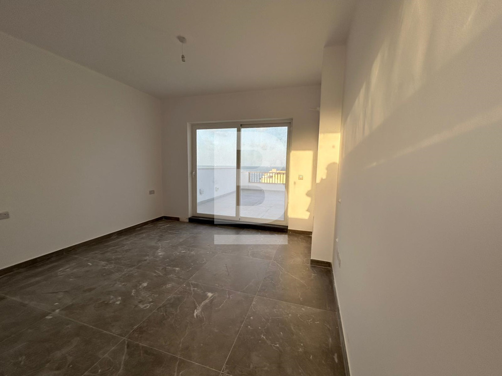 Bright and Airy 4th-Floor Penthouse in a Quiet Residential area of Mellieha, just off the Seafront. Comprising an open-plan kitchen and dining area with a separate living area that can be converted into a 2nd bedroom, a large L-shaped front terrace enjoying open field and sea views, a main bathroom, 1 double-sized bedroom with 2 further back balconies also boasting sea and country views. The property is naturally well-lit, in a great, quiet location, yet still convenient for daily amenities, FREEHOLD, and being offered in a semi-finished state (excluding bathrooms and internal doors). A lovely opportunity to own an apartment in a quiet location or as a rental investment.
