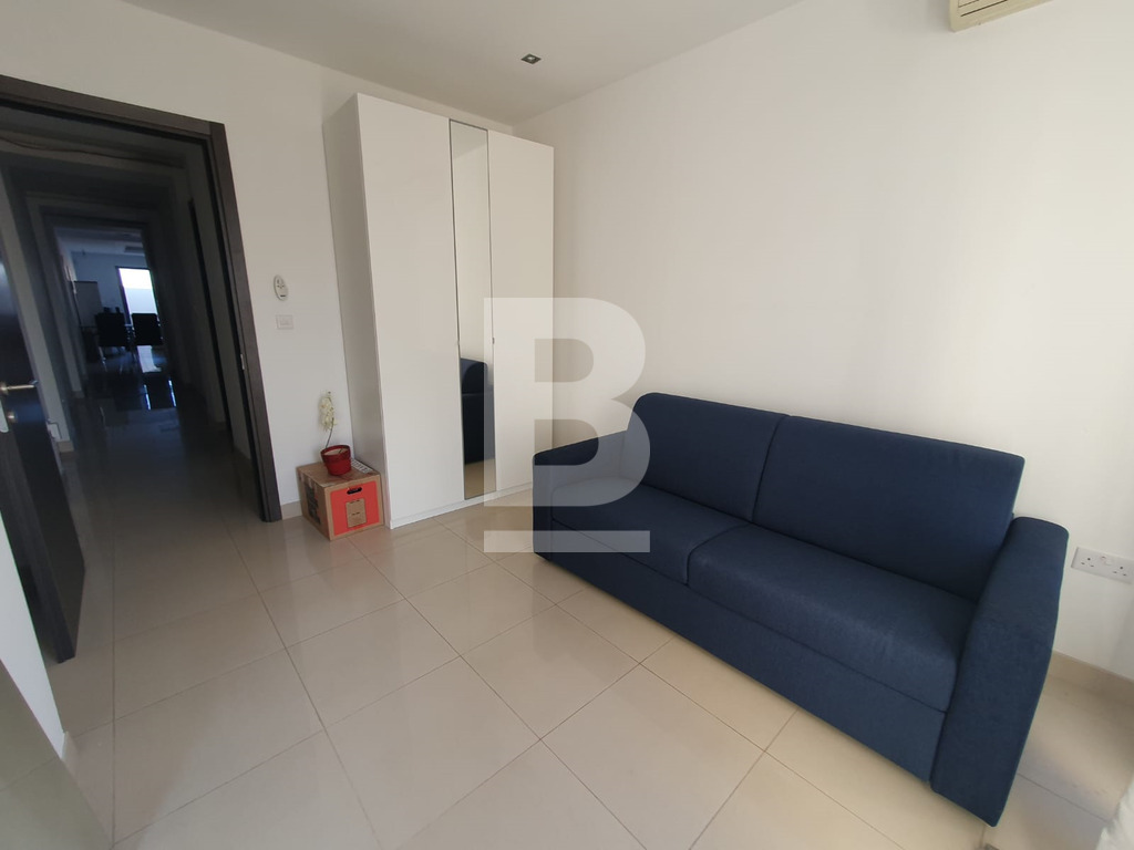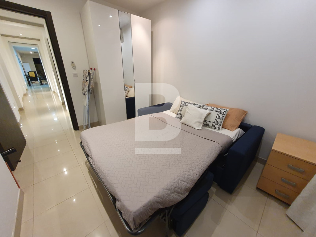 Bright and Modern 7th-Floor Penthouse in a sought-after area of Sliema and only 2 minutes walk from the Seafront. Comprising 3 bedrooms (2 double and 1 sofa-bed) in the study ( 3rd bedroom ). Fully equipped open plan kitchen with washing machine, dishwasher and microwave. 1 bathroom and 1 en-suite shower. Front and rear terraces with sea views. The property is fully air-conditioned, has lift service throughout the block and is impeccably located. A great family home or as an investment! It also comes with a 1-car garage space at level -2.