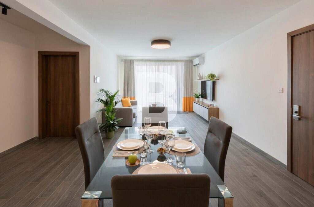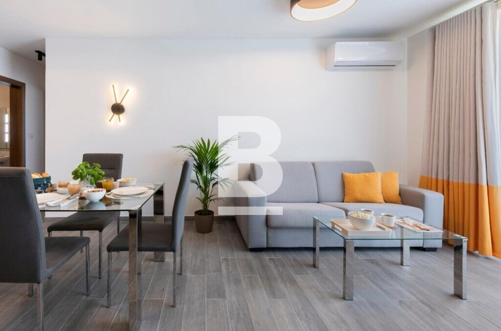 A SQUARISH layout bright apartment located in Kappara, border of St.Julian's is available for long let. A wide open plan welcomes you to this beautiful and well lit home where it's corridor less design maximes it's living space, two large balconies hug this apartment giving it the possibility for ample fresh air to flow in. Two comfortable bedrooms, one with a double bed and one with twin beds are equipped with high quality mattresses and optimum storage solutions. Ballutta Bay is reachable within 12 minute walk, Spinola Bay within 15 minute Walk and Mater dei circa 20 minute Walk, giving it's new occupants the flexibility to reach several areas on foot. Viewing is highly recommend.