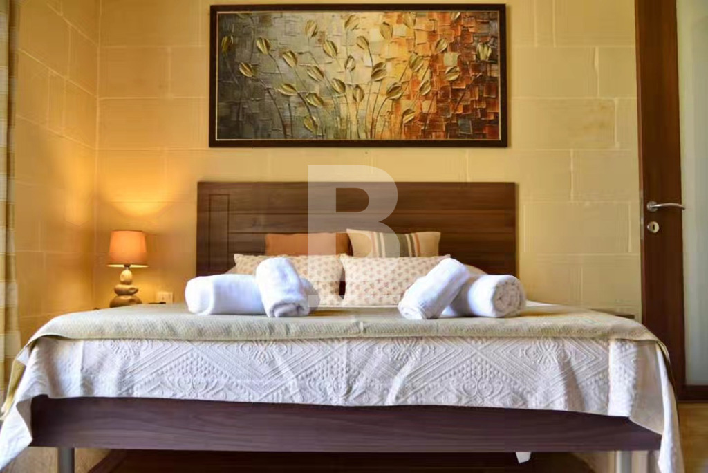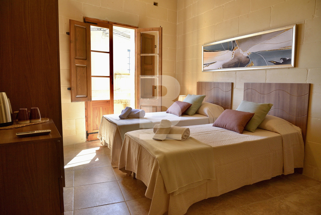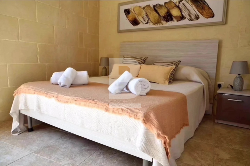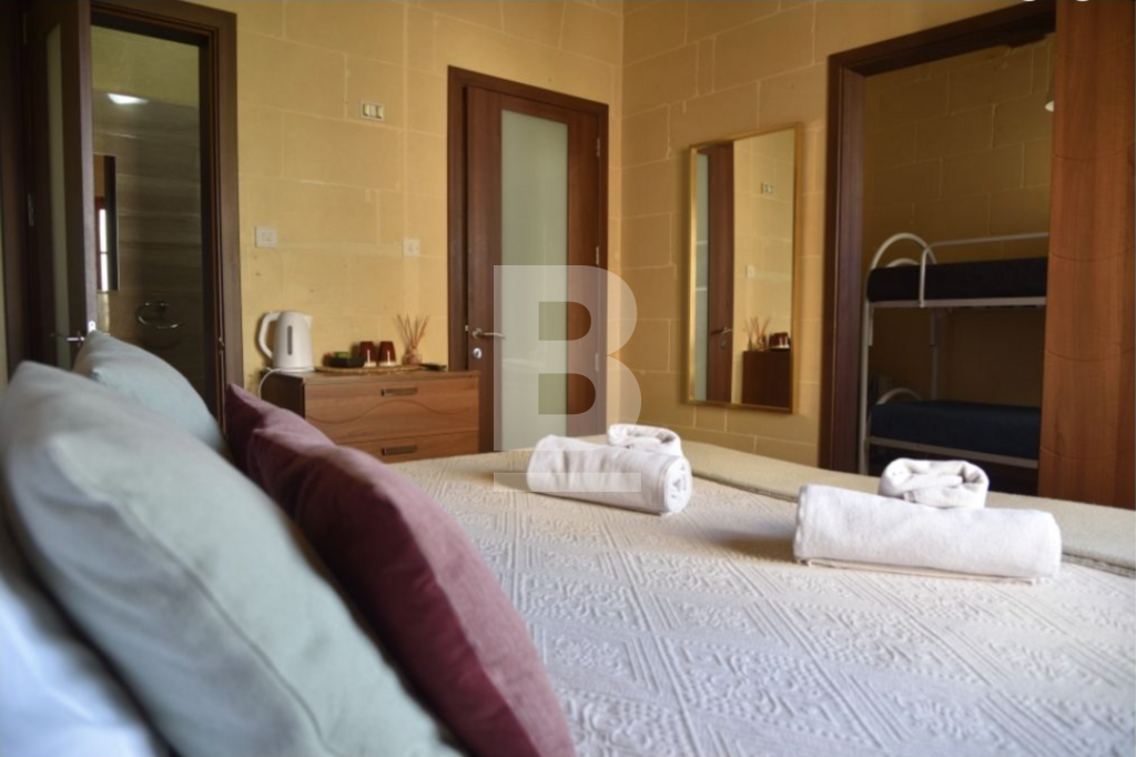 Situated in Xaghra, this well-appointed terraced house offers a comfortable and practical layout, fully air-conditioned throughout for year-round comfort. The main living area features a bright open-plan kitchen, living and dining space that flows directly onto the pool area, creating an ideal setting for both everyday living and entertaining. The residence comprises 3 generous double bedrooms, each with its own en-suite bathroom. Two bedrooms are located on the first floor, both opening onto private balconies, while the third occupies the second floor and also enjoys access to a balcony. A separate study adds further flexibility, whether for remote working or additional living space. At street level, the property benefits from an interconnected, spacious one-car garage, providing secure and convenient access directly into the home. Additional features include a front terrace and a solar water heater, enhancing both comfort and energy efficiency.