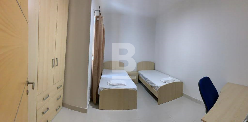 Modern and Bright 2 Bedroom Apartment in Sliema. Consisting of 1 double bedroom with en-suite facilities and a private back balcony, 1 twin bedroom ( which can be converted into a double bed ) with an office/syudy area, a main bathroom and a welcoming fully fitted kitchen, living and dining area. The property is fully air-conditioned, situated on the 2nd floor with lift service and primely located close to daily amenities with Balluta Bay, cafe's, bus stops, hardware and convenience stores being just a 3 minute walk down the road.
