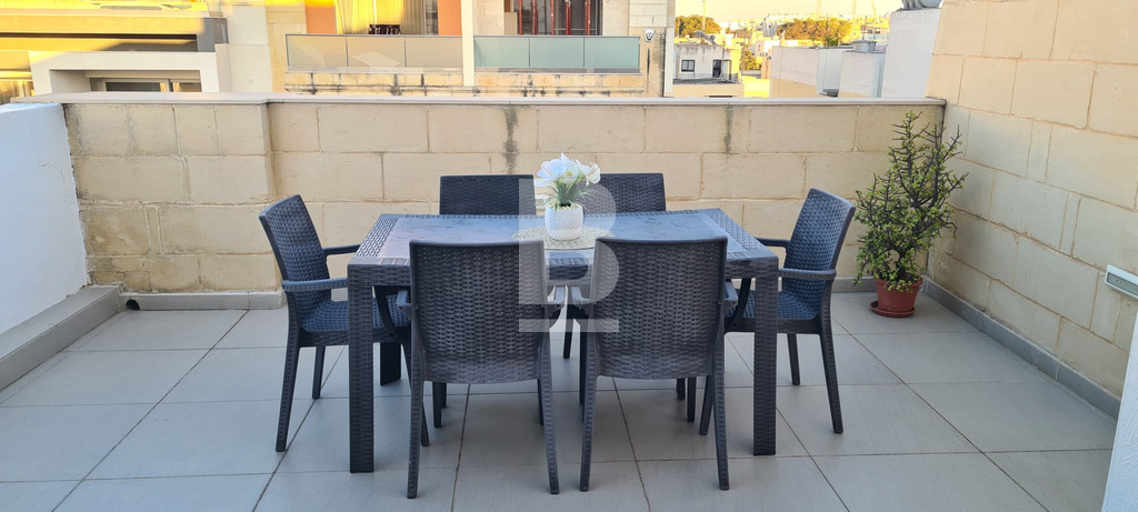 A well-maintained, high-standard penthouse situated in Balzan and forming part of a small block, this highly finished one-bedroom penthouse is bright and airy throughout. The property comprises an open-plan fully equipped kitchen, living and dining area, a spacious front terrace ideal for outdoor dining and relaxation, and a well-sized back terrace. It further includes one large double bedroom and a main bathroom. The apartment is fully air-conditioned, fitted with insect screens throughout, and furnished with high-end finishes and quality appliances.