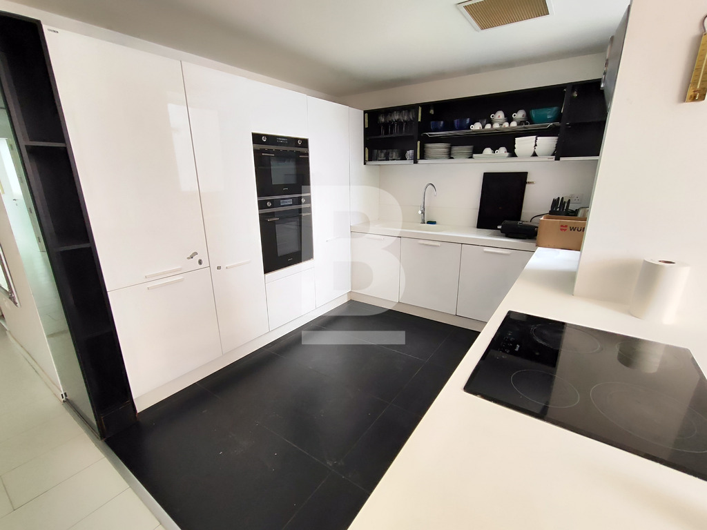 The apartment forms part of a private, gated residential complex built in the 1980s and exceptionally well maintained, featuring spacious common areas, wide hallways, a private parking area for both residents and guests, as well as 24/7 security and on-site maintenance.
