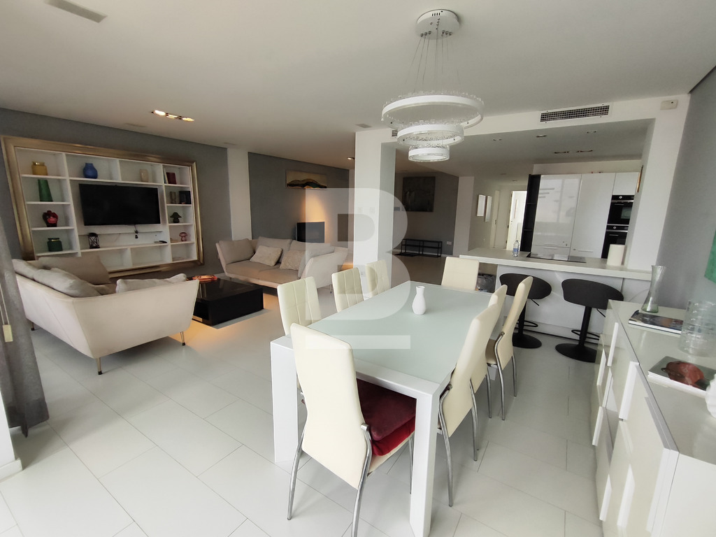 A finished and semi-furnished three-bedroom seafront apartment enjoying breathtaking 180-degree views of St George's Bay. Set on a high floor, the property is flooded with natural light throughout.