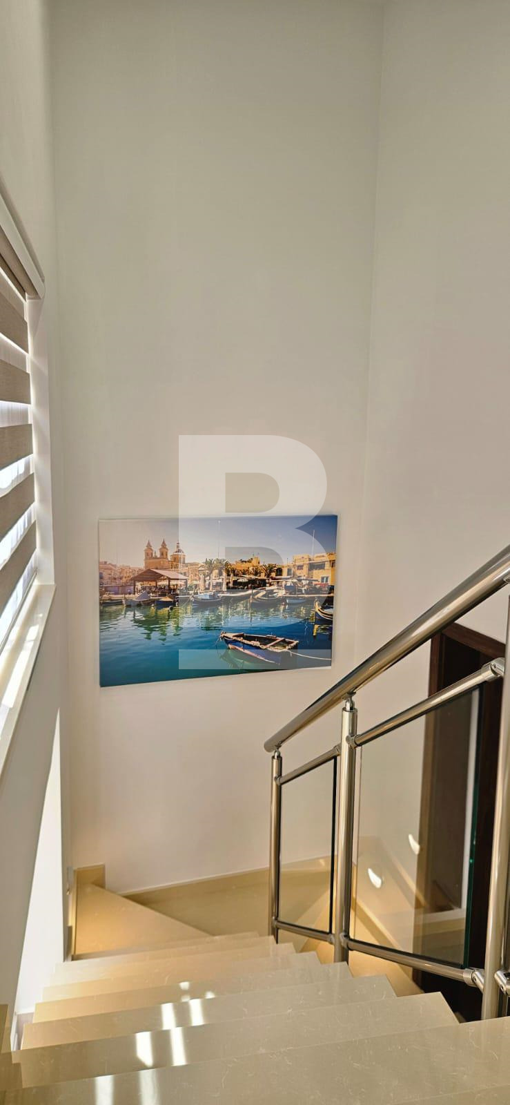 The staircase continues up to a generous rooftop, providing a pleasant outdoor space perfect for relaxing or enjoying open-air moments.