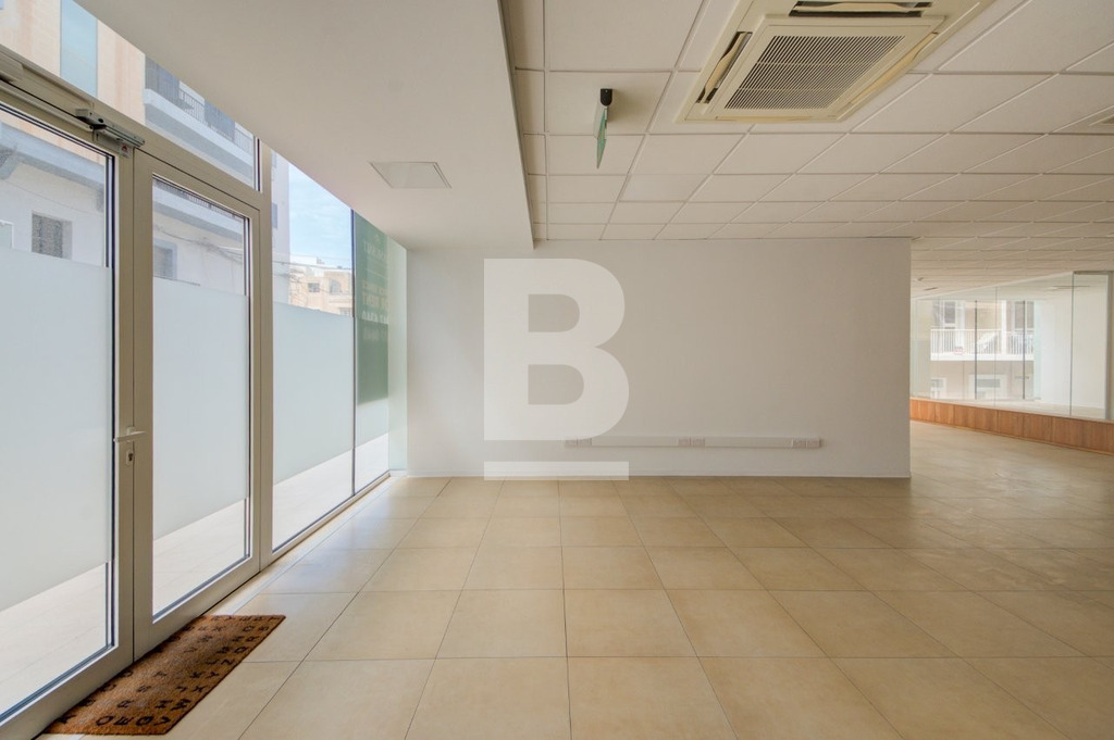 A centrally located office space situated in the heart of St.Julians. This Ground floor corner office / retail outlet is flooded with natural light and consists of a total area of approximately 220sqm with a versatile open plan layout with bathroom facilities & a kitchenette or partitioned into separate office areas as required. The property is fully air-conditioned and includes network and electrical cabling and offers flexibility for business use, giving great exposure to your business.