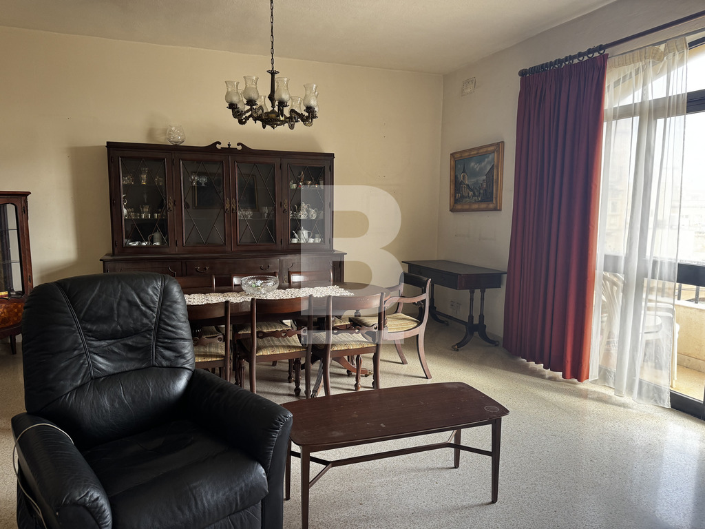 A beautifully laid-out apartment situated on one of Sliema’s most sought-after streets, enjoying a wide façade and two front balconies with side sea views. The property comprises an entrance hallway leading to a large living / dining area and a separate spacious kitchen/breakfast room, both with direct access to the front balconies. Further inside, the apartment features a secondary living/reception room at the centre of the property, a laundry area, a guest toilet, and a study. The sleeping quarters include two well-sized double bedrooms, one with an ensuite bathroom and access to a back balcony, and a single bedroom. This superbly located and exceptionally bright apartment offers an airy feel throughout thanks to its generous layout and wide frontage. Once refurbished, it would make an excellent investment or a wonderful home. A must see!