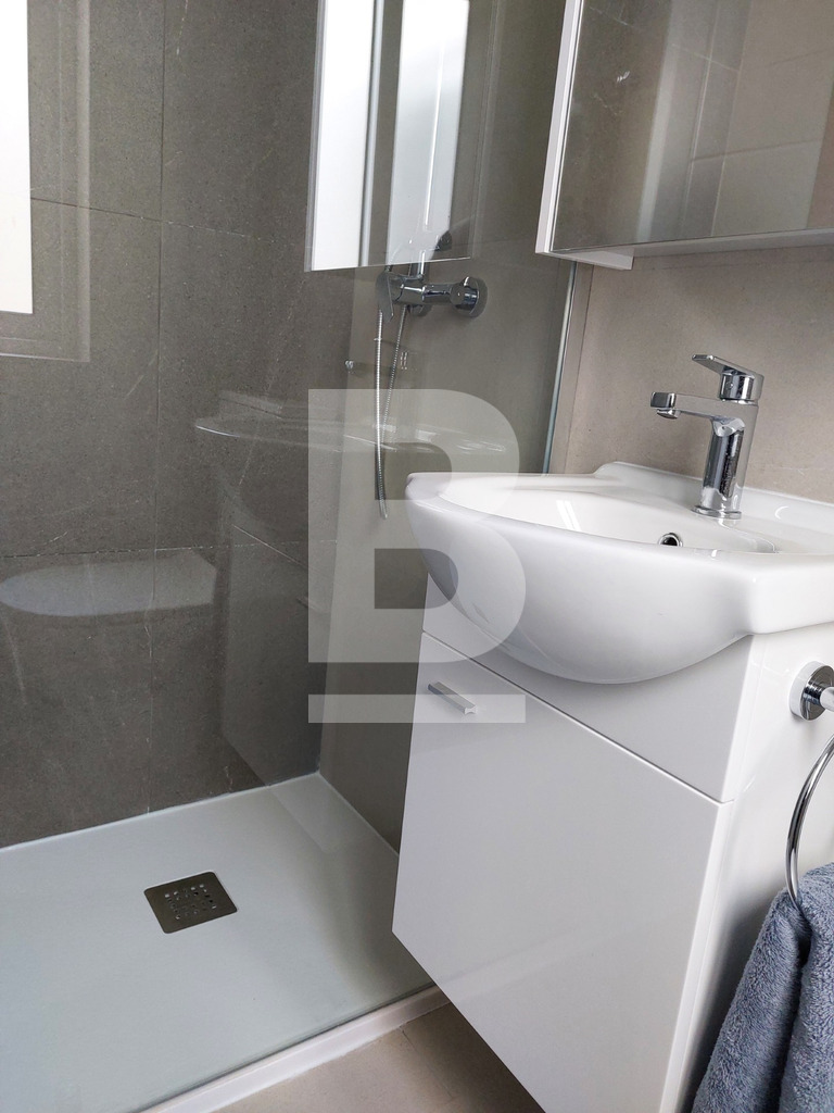 Excellently located and close to all amenities, a new wide fronted, well finished apartment offering a comfortable, bright and airy acommodation. Spacious living / kitchen / dining area with walk-out onto a front terrace with space for a table and chairs. Two sizable bedrooms, both with en-suite, and a guest shower room with washing machine and dryer. Definitely an apartment to consider.