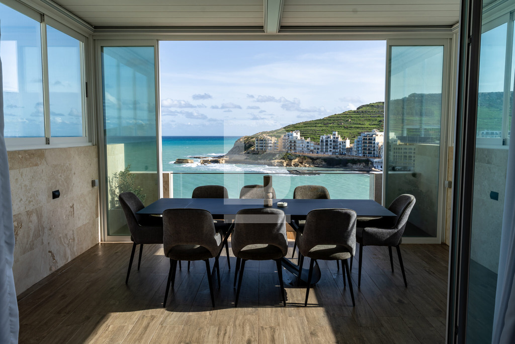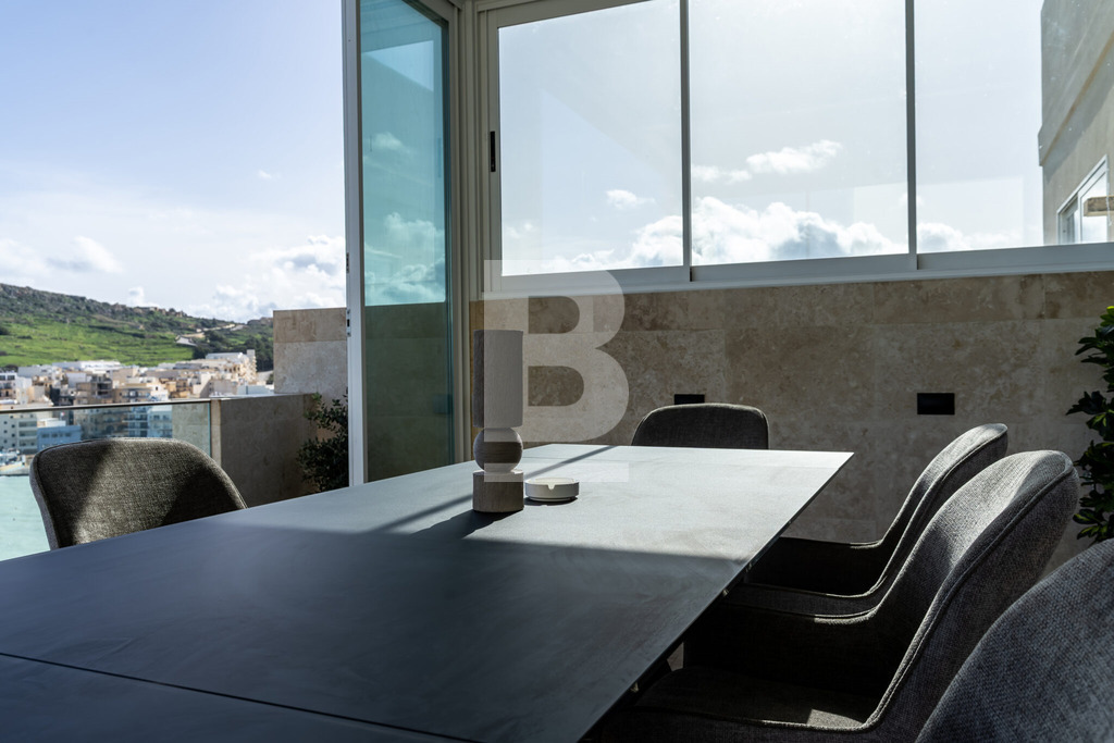 Wake up to uninterrupted panoramic sea views in this beautifully designed, fully furnished duplex penthouse set directly on the Marsalforn seafront. This exceptional 2 bedroom penthouse offers generous indoor & outdoor space across two levels, enhanced by abundant natural light and refined finishes throughout. A spacious front terrace with a retractable awning provides the perfect setting for relaxing or entertaining at any time of day. With its prime seafront position, designer furnishings, and elevated duplex layout, this property stands out as a rare rental opportunity in one of Gozo’s most desirable coastal locations.