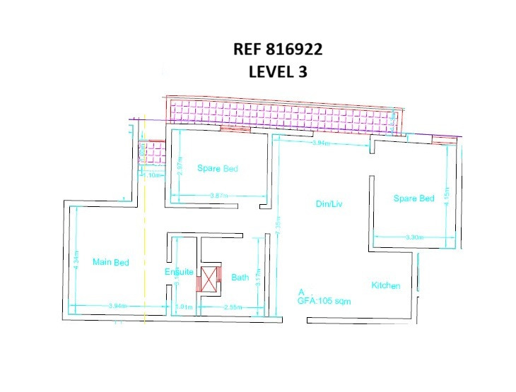 Presenting a semi-finished 3rd apartment in Zejtun, situated on the third floor of a modern block of 24 units. Spanning 105 sq m, this property features three bedrooms, two bathrooms (including one en-suite), and an open-plan kitchen, dining, and living area. The apartment benefits from a front open balcony and a small balcony, providing ample natural light. Additional conveniences include a lift, an interconnected lock-up garage/car space, and a total internal area of 100 sq m with 5 sq m of external space. Ideal for those seeking a comfortable home with practical amenities in a well-connected location.