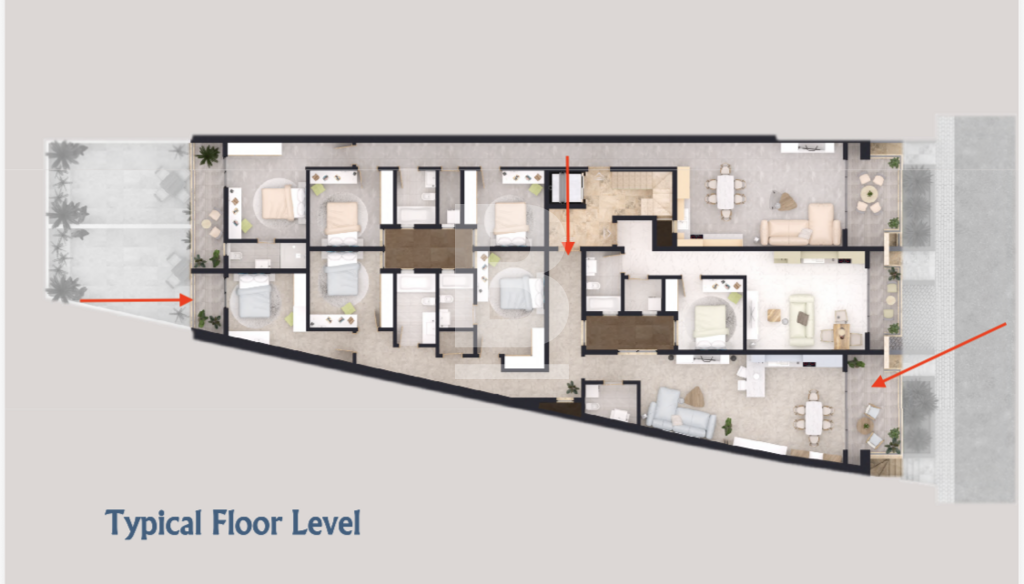 New on the market, this first-floor apartment is located in one of the most sought-after residential areas of this charming village, forming part of a smart, modern development close to all amenities. The property measures approximately 141sqm internally and 15sqm externally and comprises a corridor leading to a bright open-plan kitchen/living/dining area opening onto a front terrace, a guest toilet, three double bedrooms (main with en-suite), a main bathroom, and a back balcony. It is being offered finished, excluding bathrooms and internal doors, allowing for personal customization, while common parts will be completed to high specifications and the block will be served with a lift. Optional garages are available, completion is scheduled for the end of 2026, and the property is freehold. Kindly note that photos are artistic renders for illustration purposes, as the apartment is currently in shell form.
