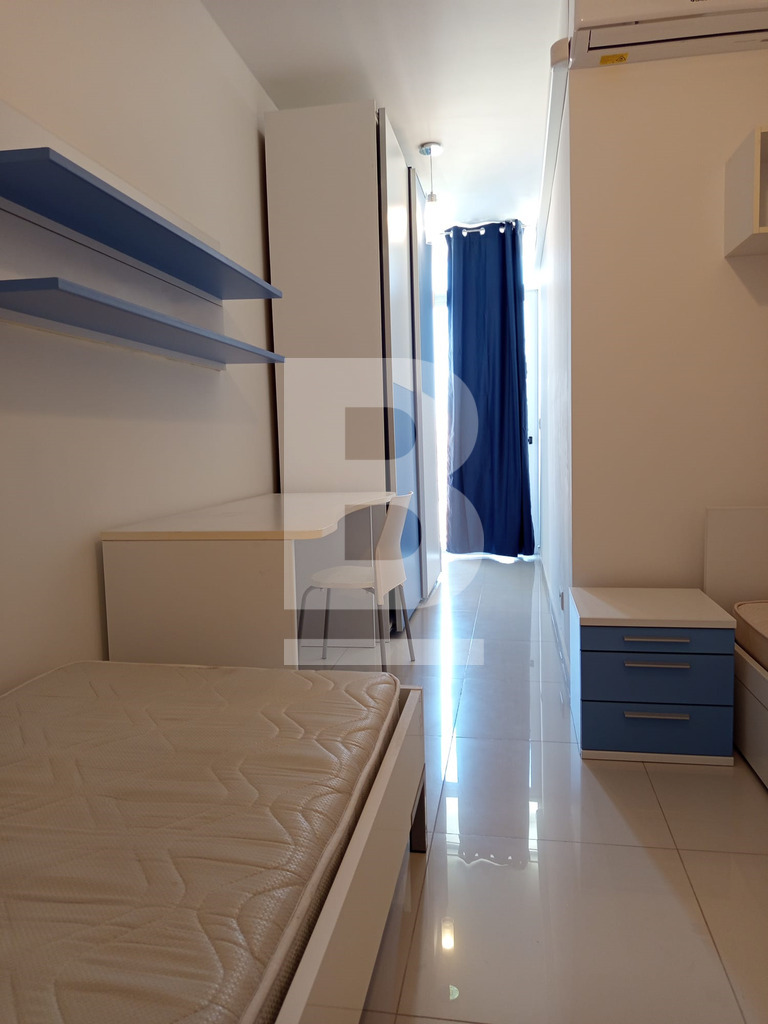 Modern and Bright 2 Bedroom Apartment in Swieqi. Comprising 1 double bedroom, 1 twin bedroom ( accommodating up to 4 persons ) - ideal for sharers or a small family, a main bathroom, fully fitted open plan kitchen, living and dining area with front and back balconies. The property is naturally well-lit being South-facing, fully air-conditioned, situated on the 2nd floor served with a lift and located close to daily amenities including; pharmacies, cafe's, children's playgrounds convenience stores and within a 10 minute walk of the Paceville business offices.