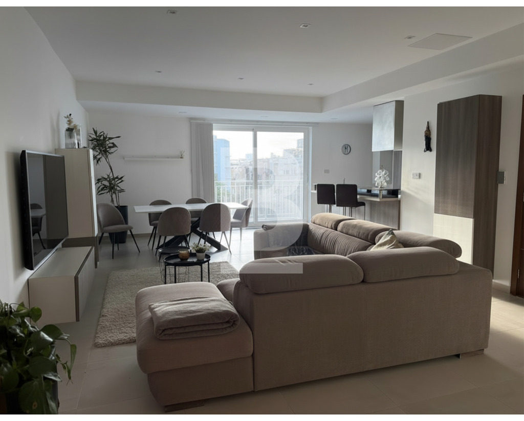Nestled within a quiet, exclusive block of just four units, this impeccably finished 161sqm 3rd floor apartment defines modern Mediterranean living. The residence boasts an expansive, sun-drenched open-plan kitchen, living, and dining area that flows seamlessly onto a generous front balcony. A laundry room/ storage area and a family bathroom can be found across the wide hallway that is leading towards the bedrooms. Accommodations include three well-appointed bedrooms, highlighted by a creative master en-suite along with a private walk-in wardrobe. Meticulously designed and flooded with natural light, this turnkey home offers a perfect blend of style and serenity. An ideal home or for those looking to long let.