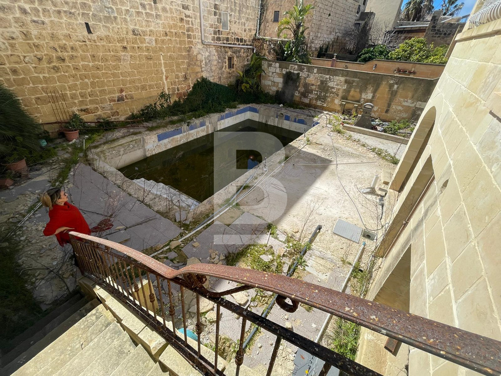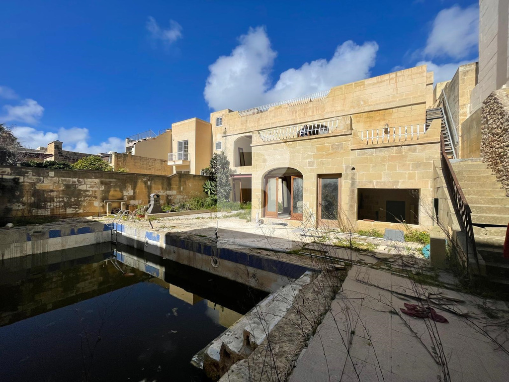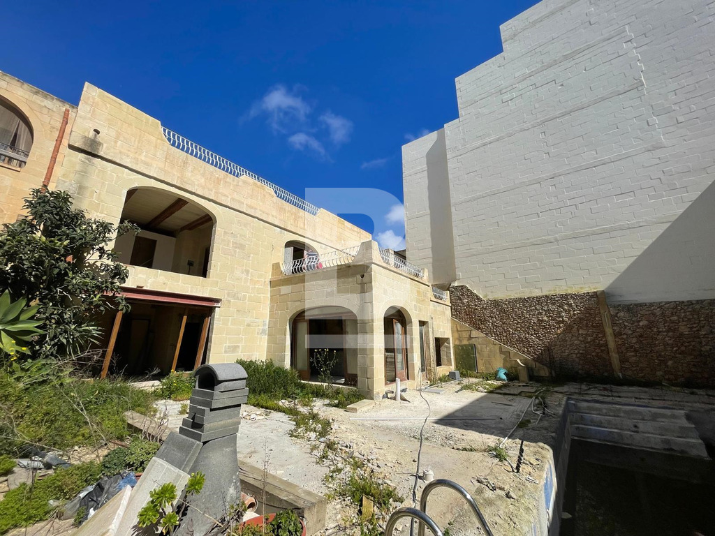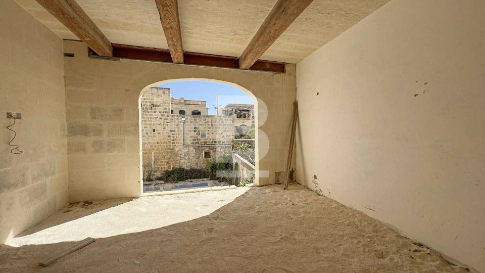 A rare opportunity to acquire a beautifully semi restored 400-year-old townhouse in Sannat seamlessly blending historic character with modern design and infrastructure. Set on a generous footprint of approximately 420 sqm, the property has undergone extensive structural renovation and is designed to accommodate up to 9 en-suite bedrooms, making it ideal as a luxury residence, boutique hotel, or high-end guesthouse. The layout is highly versatile, featuring three independent access points that allow each level to function as a self-contained unit, perfect for rental or hospitality use. The property is being sold partly finished, including high-quality materials such as double-glazed Iroko apertures, travertine flooring and wrought-iron railings, with most electrical and plumbing works already in place. To the rear, a spacious 185 sqm outdoor south facing area features an impressive 11m x 5.5m swimming pool, complemented by terraces and a traditional well. Located just 300 metres from village amenities, this exceptional property offers a unique blend of authenticity, scale, and investment potential in the heart of Gozo.