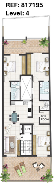 All renders used in this advert are made to scale using either the actual room/outdoor area within the property plan or a picture of the actual room/outdoor area. It is only meant to give the viewer an idea of how the property could look once completed. Furniture and fittings are not included.
