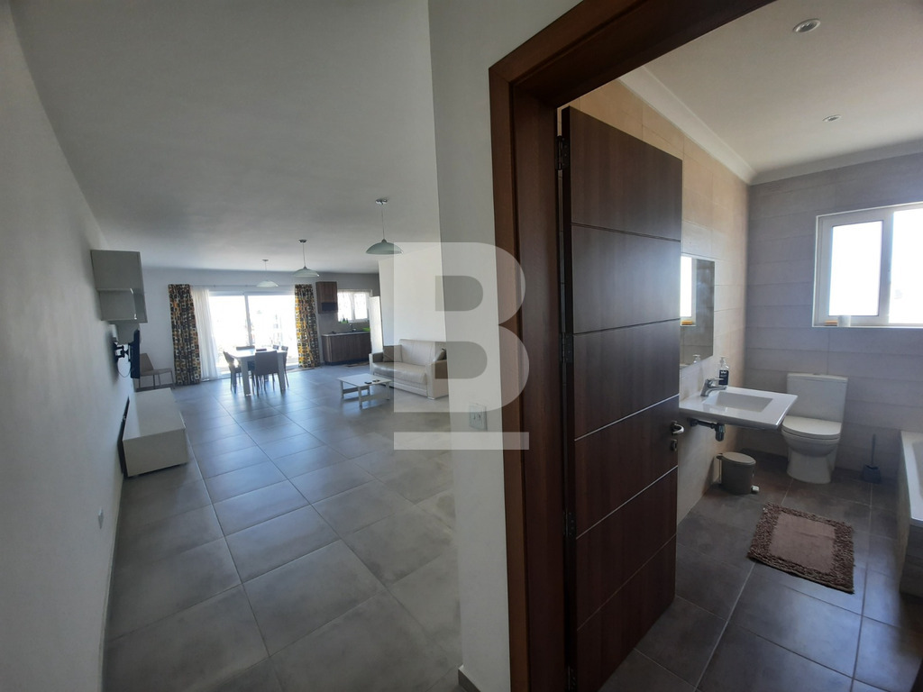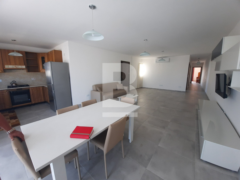 Modern, Bright and Spacious Apartment in Iklin. Comprising 1 double bedroom featuring en-suite facilities and air-conditioning, 1 twin bedroom, 1 single bedroom both with ceiling fans ( accommodating up to 5 persons ) - ideal for shares or a family, main bathroom with a bath-tub, a larger than usual fully fitted open plan L-Shaped kitchen, living and dining area with front and back balconies permitting natural light throughout the day given that the building facade is East-facing. The property is situated on the 3rd floor served with a lift and located close to amenities including: shops, salons, showrooms, bus stops, Maypole, Smart Supermarket and more...