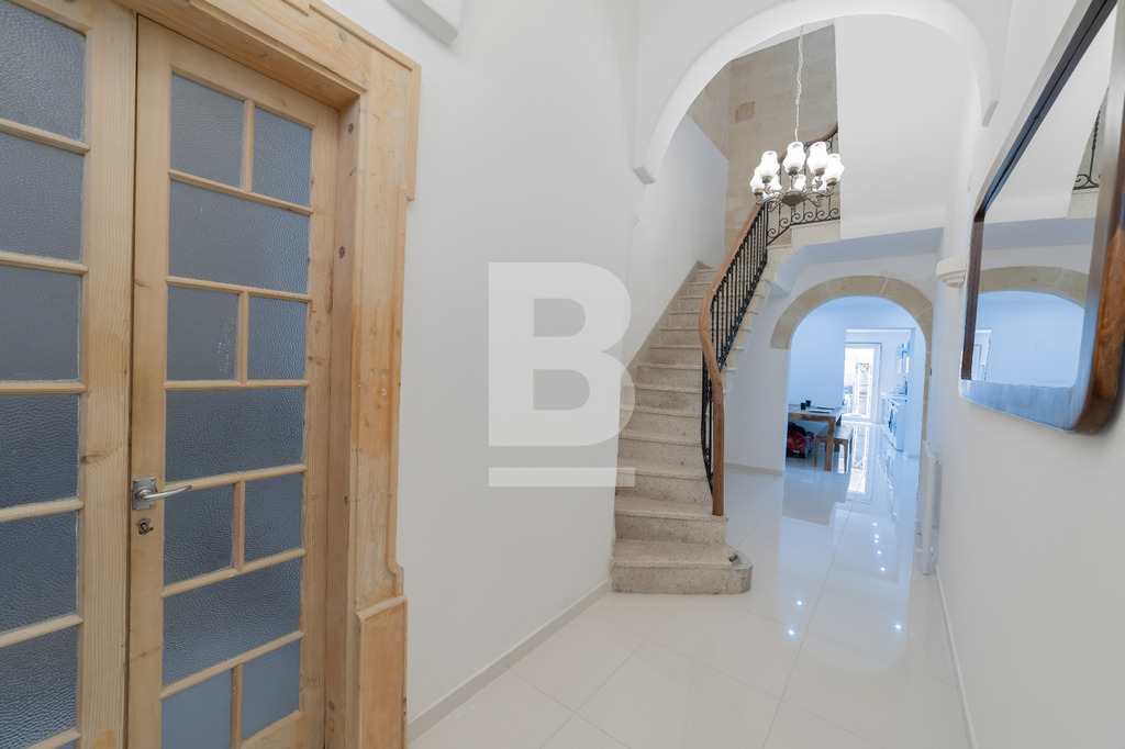 NAXXAR – Converted Character Townhouse (UCA Area, Freehold). Set along a quaint, traditional street in the heart of Naxxar, this beautifully renovated and fully furnished four-bedroom townhouse is located within a UCA zone, allowing for valuable tax benefits. At ground level, the property opens into a versatile sitting area which may also be adapted into a garage. Moving further in, one finds a central staircase, a fully fitted kitchen, a guest bathroom, and a small yard. The first floor offers three bedrooms and a main bathroom, while the second floor comprises a fourth bedroom and an additional bathroom. The third floor includes a washroom with the potential to be transformed into another bedroom or living space, complete with a shower and access to a yard that is set to feature a pool. At roof level, a private terrace enjoys open, far-reaching views, making it ideal for outdoor entertaining. This freehold home will be sold complete with a lift and pool, presenting a rare opportunity within a highly desirable village core location.