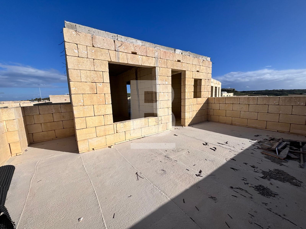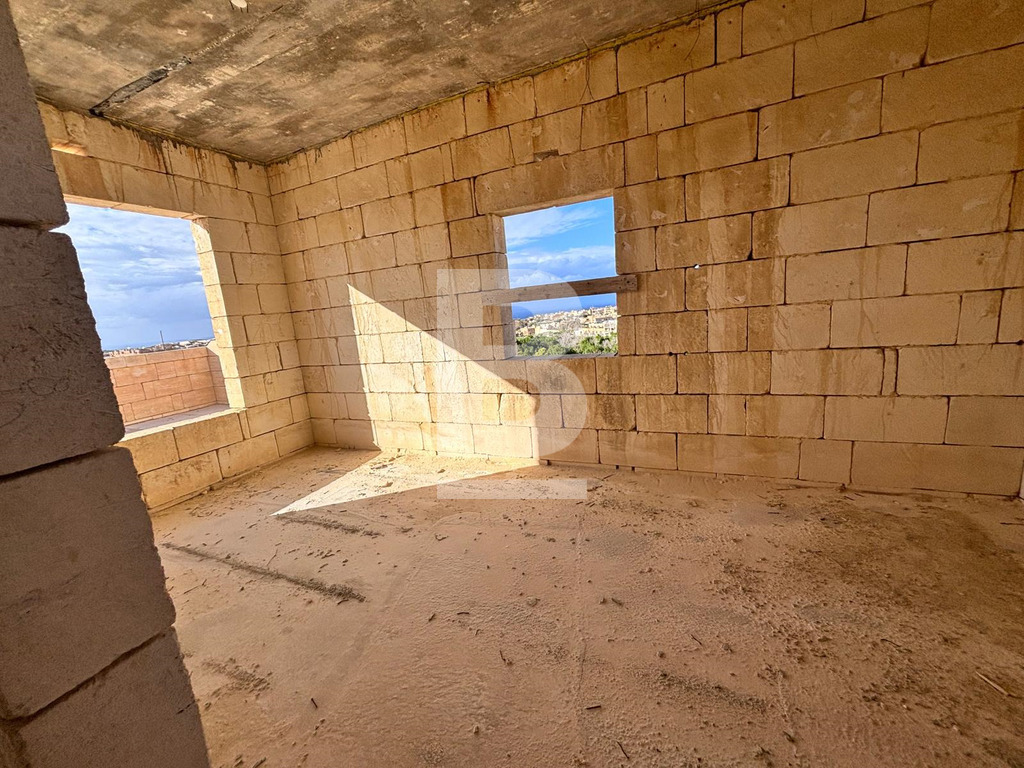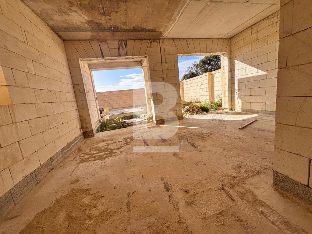 Located in the peaceful village of San Lawrenz, this semi-detached villa offers a rare opportunity to create a bespoke home within a desirable UCA area. This property is offered in shell form and includes a spacious internal layout along with generous outdoor areas. The villa enjoys open sea and countryside views, providing a quiet and private setting. The planned accommodation comprises an entrance hall, an open-plan kitchen, living and dining area, 5 double bedrooms all with en-suite facilities, a main bathroom, and a guest toilet. Outdoor features include a private swimming pool, back terrace, carport, basement level, and full airspace, along with a well-sized roof area. This property is ideal for buyers looking to complete and customise every detail to their own style and standards, transforming it into a truly personal and unique home.