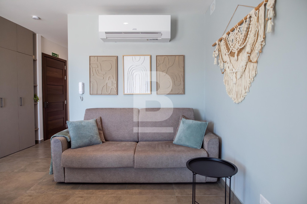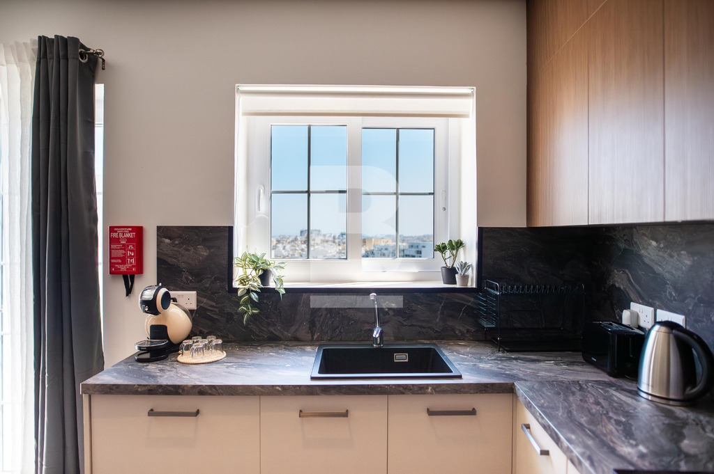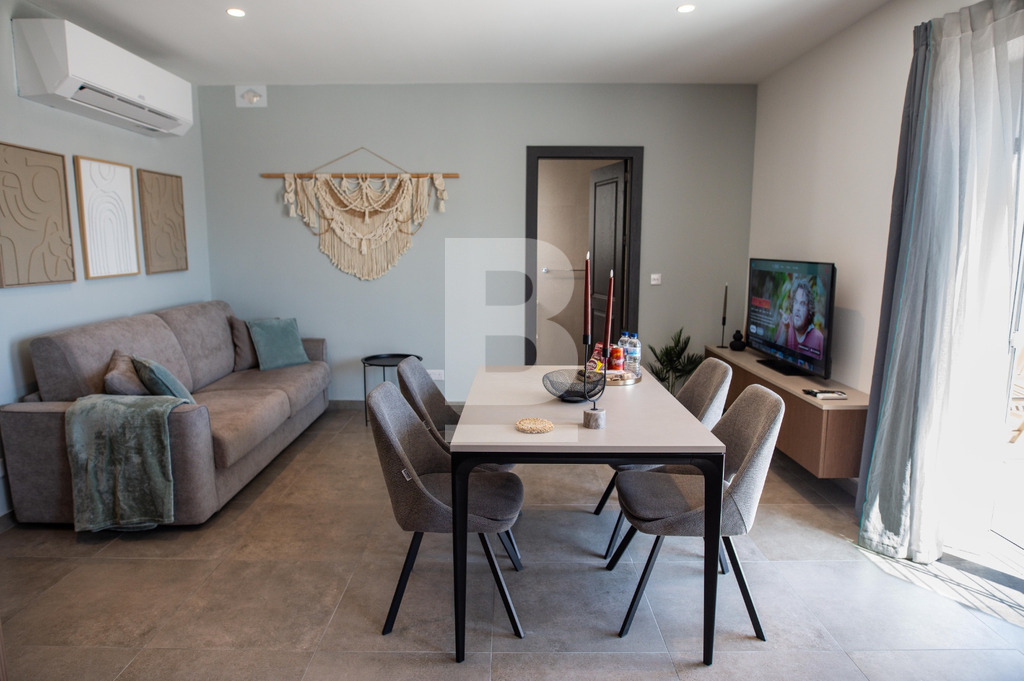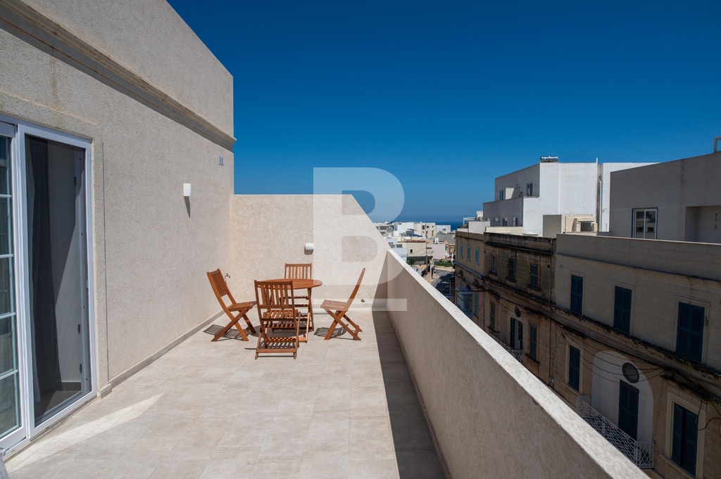 Set on the fourth floor just moments from Balluta Bay, this beautifully designed penthouse offers stylish coastal living in a prime location. The property features a bright open-plan kitchen, living, and dining area that flows seamlessly onto a spacious terrace, ideal for entertaining or relaxing, complete with outdoor furniture. The fully equipped kitchen is both modern and functional. Accommodation consists of a generously sized double bedroom and two well-appointed bathrooms, offering both comfort and convenience. The penthouse is fully air-conditioned throughout and served with a lift. Perfectly positioned close to all amenities, restaurants, and the seafront, this home is an ideal rental investment or chic residence.