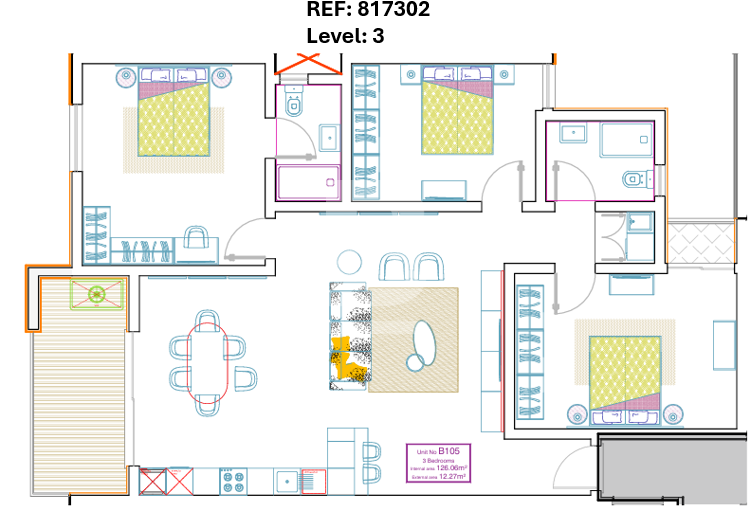 Located in a well-esteemed part of Mellieha, comes this new 3rd Floor Apartment forming part of what will be a Highly Finished block. This particular unit is larger than usual covering approximately 138.33sqm ( 126.06 internally and 12.27 externally ). Comprising 3 double-sized squarish bedrooms ( master featuring en-suite facilities enhancing privacy ) and an additional main bathroom. A comfortable open plan kitchen, living and dining area further complements this spacious property, which also enjoys a front terrace for outdoor entertainment space providing a comfortable balance between outdoor and indoor living spaces. The property is being offered FREEHOLD, with optional underlying 1 & 2 car garages, fully finished, including bathrooms, but excluding internal doors, and to high standards and specifications with an expected completion date of January 2027. A unique opportunity to purchase a sizeable property in a lovely area of Mellieha renowned for its tranquility and peaceful lifestyle!