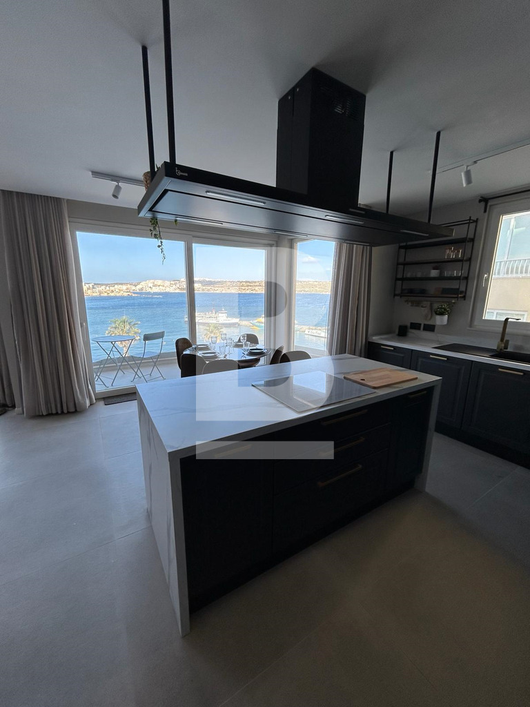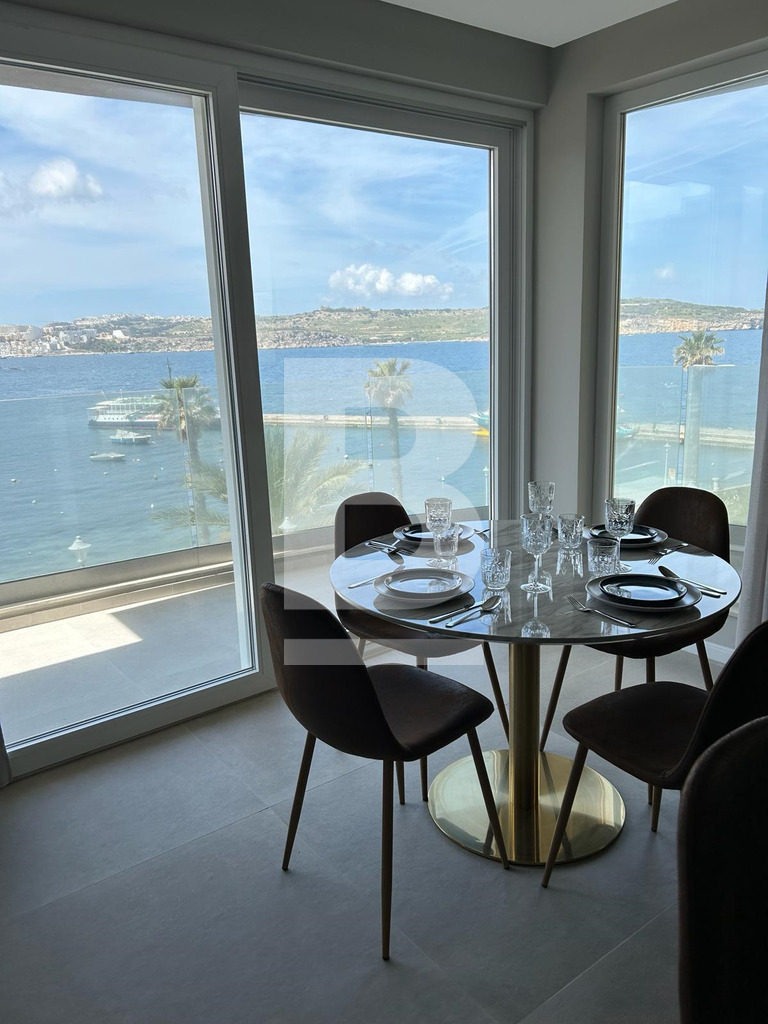 SUPERIOR standard SEAFRONT corner Apartment is available for long let. This magnificient apartment, offers a cruise liner feel experience directly from the comfort of it's living room. A wide open plan hall welcomes you to this larger than usual apartment, leading onto the front terrace with direct unobstructed views of the Mediterranean. It's been furnished with high quality furniture, the kitchen is every chef's dream, offers an additional Island allowing you to cook with a view should you wish to. The dining area's round table compliments this setup with an easy flow, also enjoying direct seaviews, whilst the comfortable sofa creates a warm ambience for the living area - also with a seaview. The sleeping quarters area equipped with high quality bedding, ensuring a good night's rest, with the master bedroom having it's private en-suite facilities, whilst occupants of the second bedroom may make use of the main bathroom. Free Wifi is included and installed, a very good value property in a locality that offers sun all year year round, having all amenities reachable within few minutes walk.